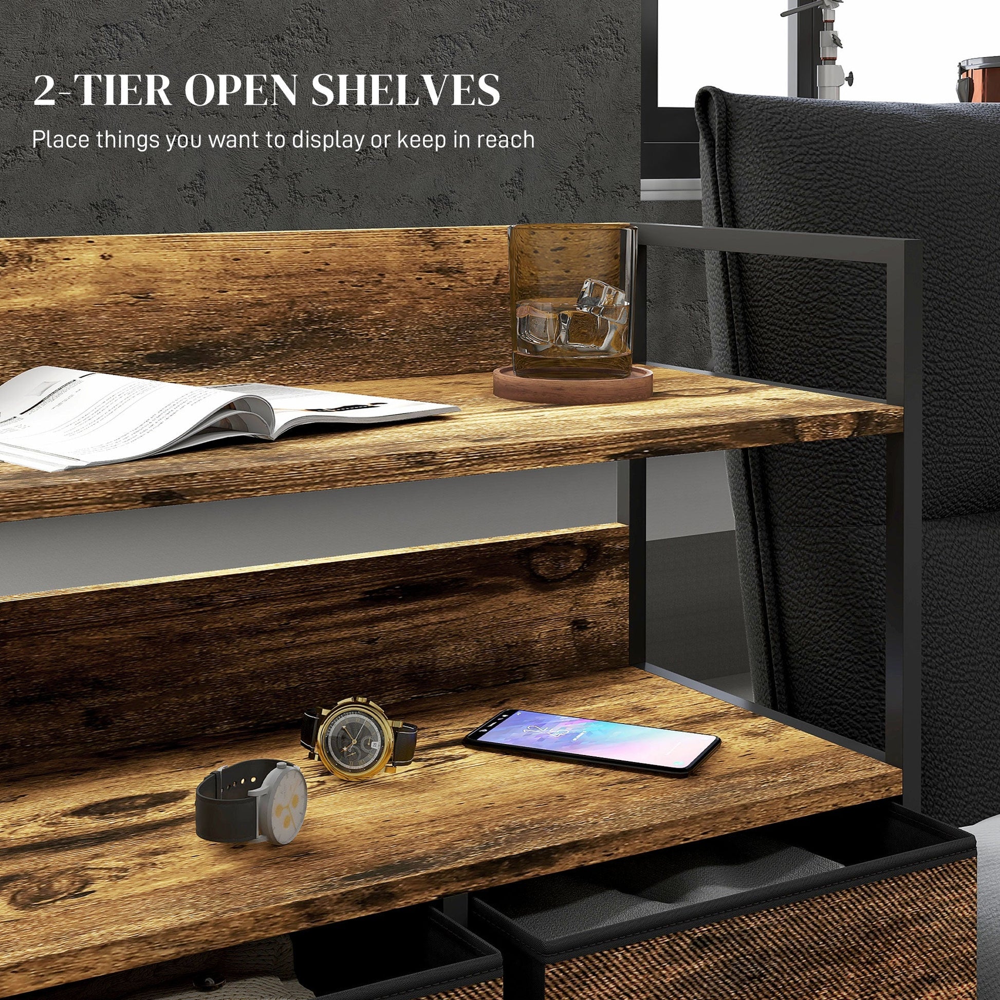 - Weight Capacity: 35kg (overall), 15kg (top), 10kg (open shelf), 3kg (each drawer)