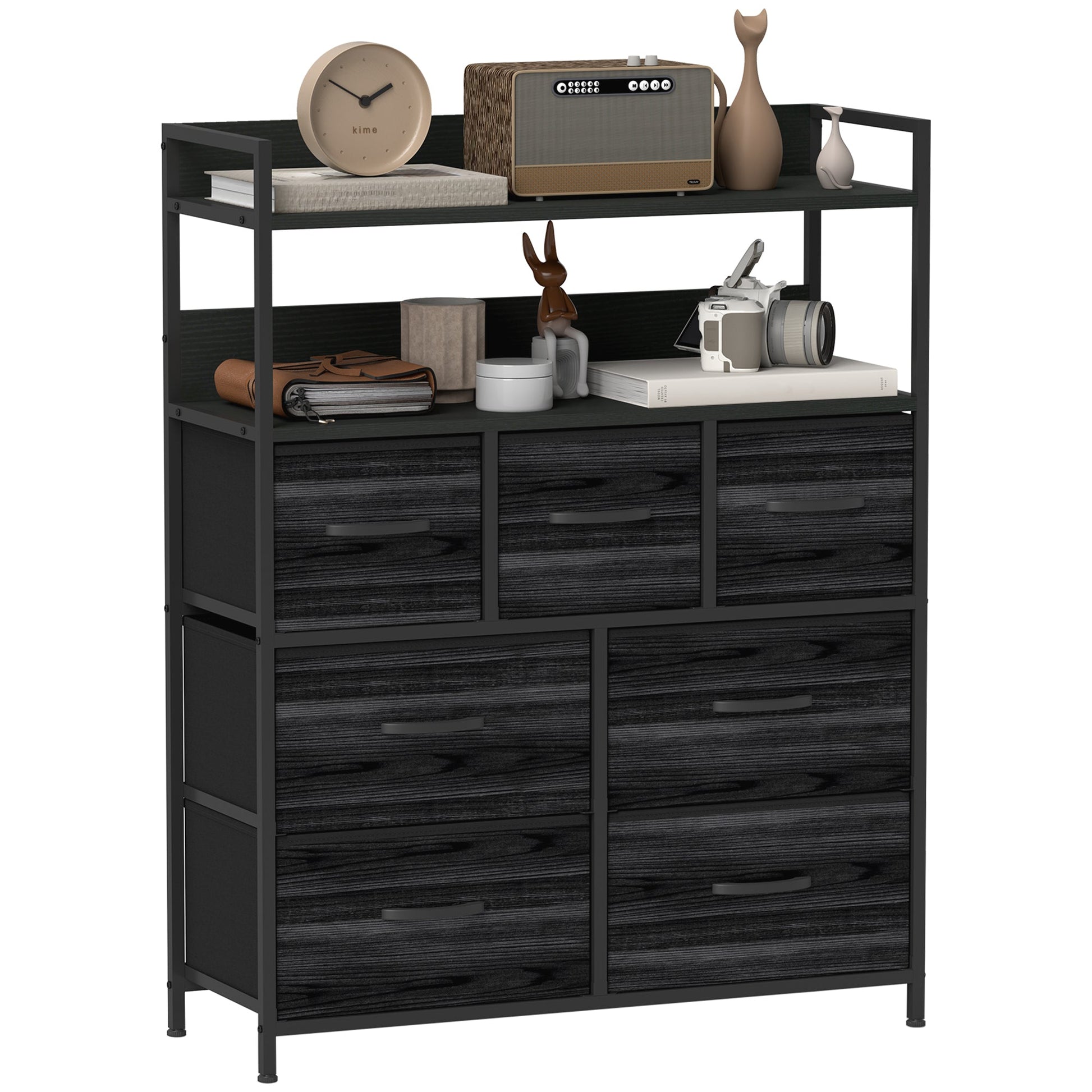 HOMCOM Rustic Chest of Seven Fabric Drawers - Black