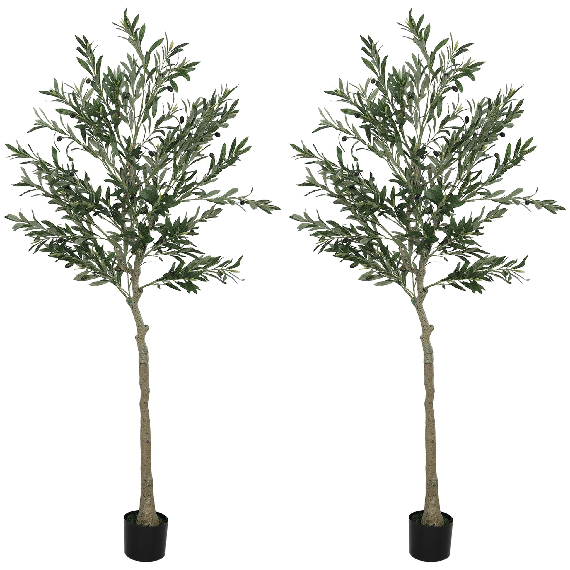 HOMCOM Set of Two Silk Leaf Artificial Olive Trees