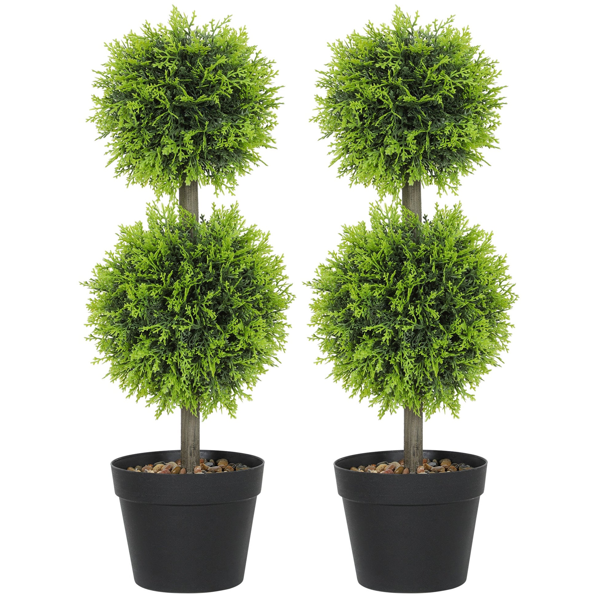 Transform your space with the HOMCOM Set of 2 Artificial Topiary Cypress Plants. Featuring a stylish double-ball design with 213 lush, lifelike leaves each, these indoor plants add a touch of greenery. No watering, no pruning—just lasting beauty. The weighted pots have passed an 8 tilt test for added stability, making them a great addition to your living room, entryway, or home office.