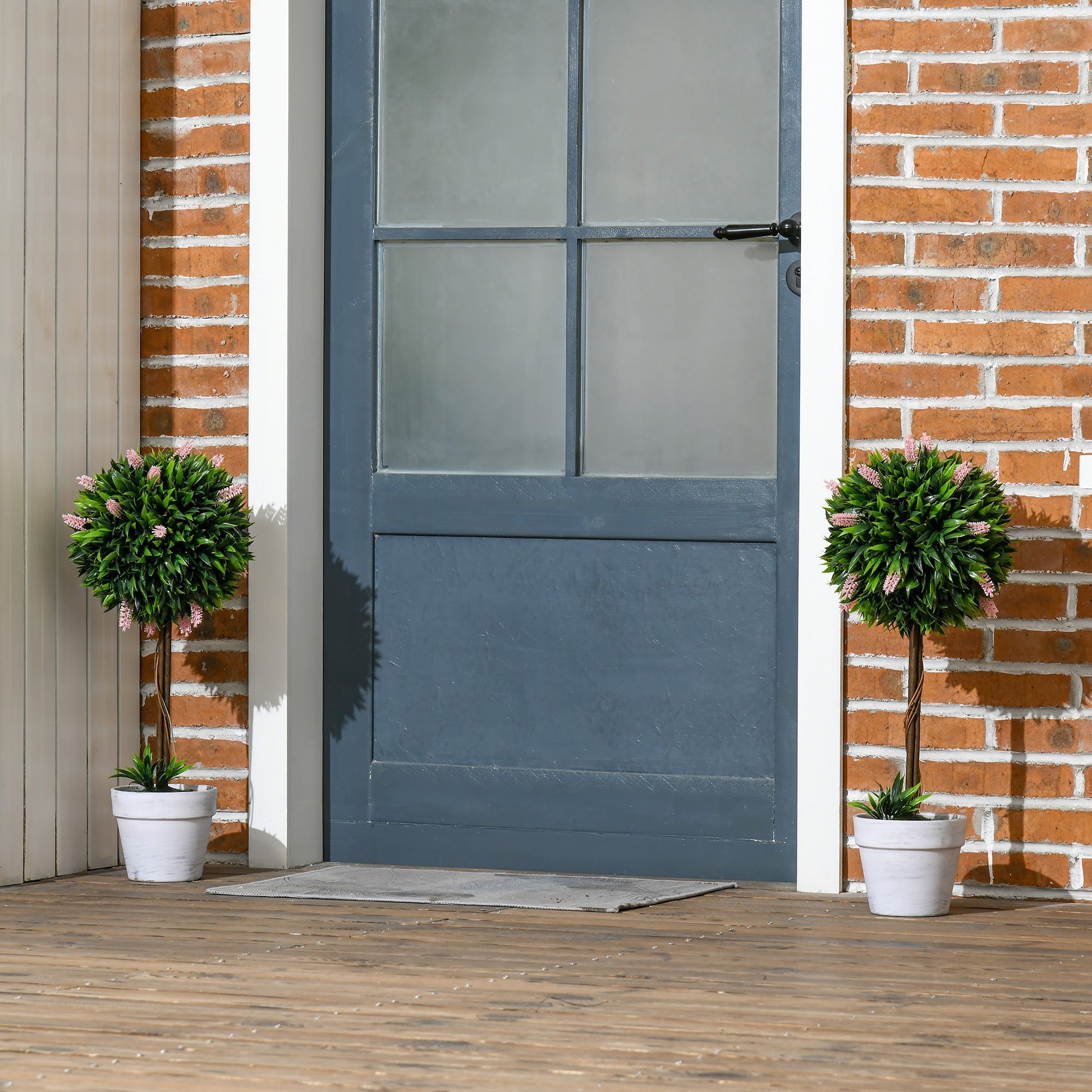 HOMCOM Set of 2 Decorative Artificial Plants Ball Trees with Flower for Home Indoor Outdoor Decor, 60cm ,Pink