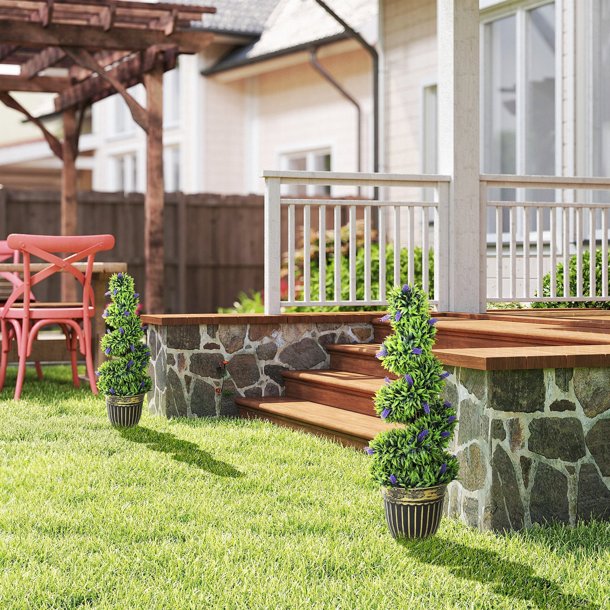 Year-round beautiful greenery with these HOMCOM decorative artificial plants. A spiral design with green leaves and blue lavender, fitted on an elegant black and gold-coloured pot; filled with cement to keep it weighted. A durable design, which looks beautiful without any upkeep - suitable for both indoor and outdoor use.