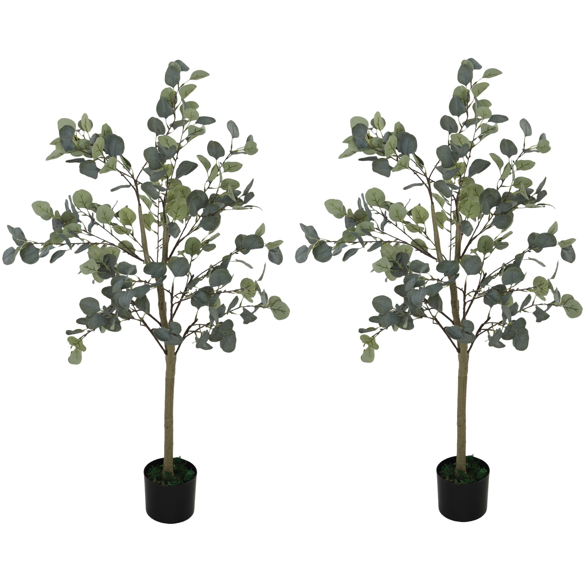 HOMCOM Set of 2 Decorative Artificial Tree, 4ft/ 120cm Silk Eucalyptus Trees with 230 Silver Dollar Leaves in Pot, Fake Plants for Home, Office, Living Room, Indoor Decor