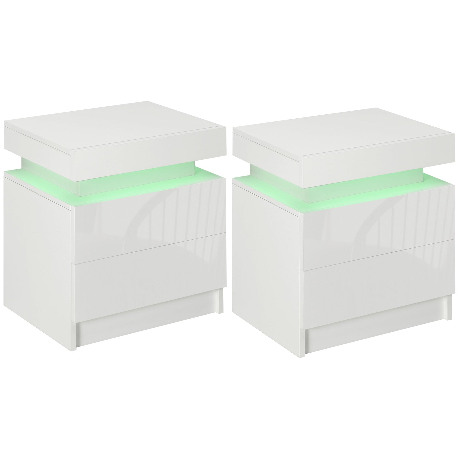 HOMCOM Set of 2 White Bedside Tables with LED Lights, High Gloss Front Nightstands with 4 Drawers