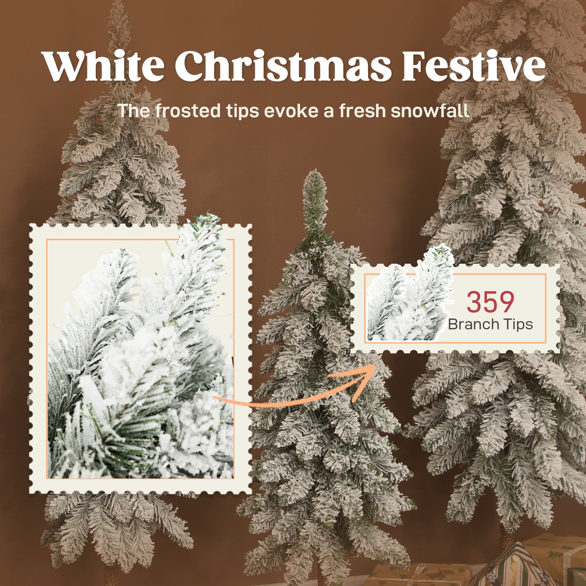 HOMCOM Set of 3 Pencil Flocked Christmas Tree, 3ft 4ft 5ft