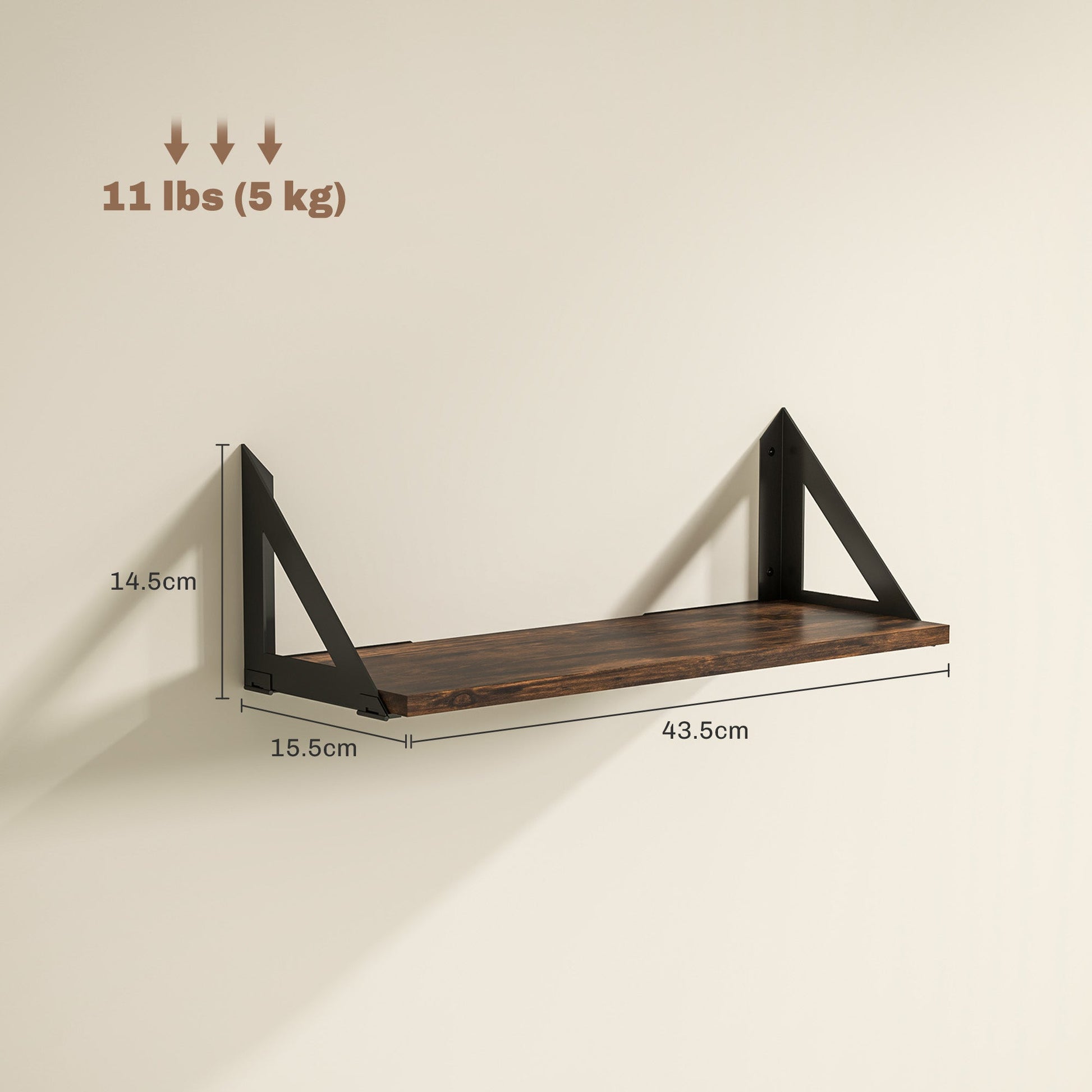 HOMCOM Set of 3 Wall Shelves, 43cm Vintage Wall Mounted Floating Shelves for Living Room, Entryway, Bedroom, Rustic Brown