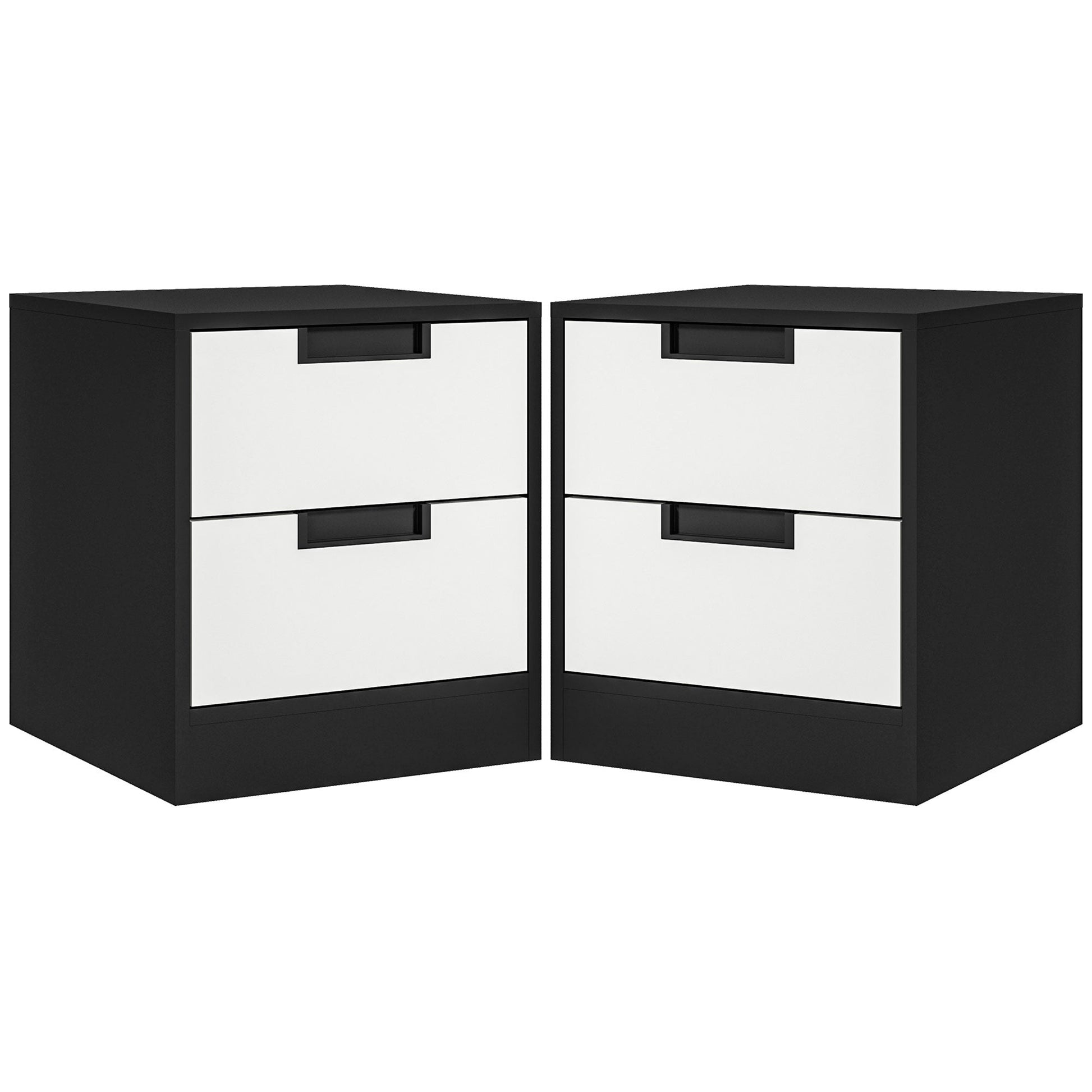 HOMCOM Set of Two Monochrome Two-Drawer Bedside Tables