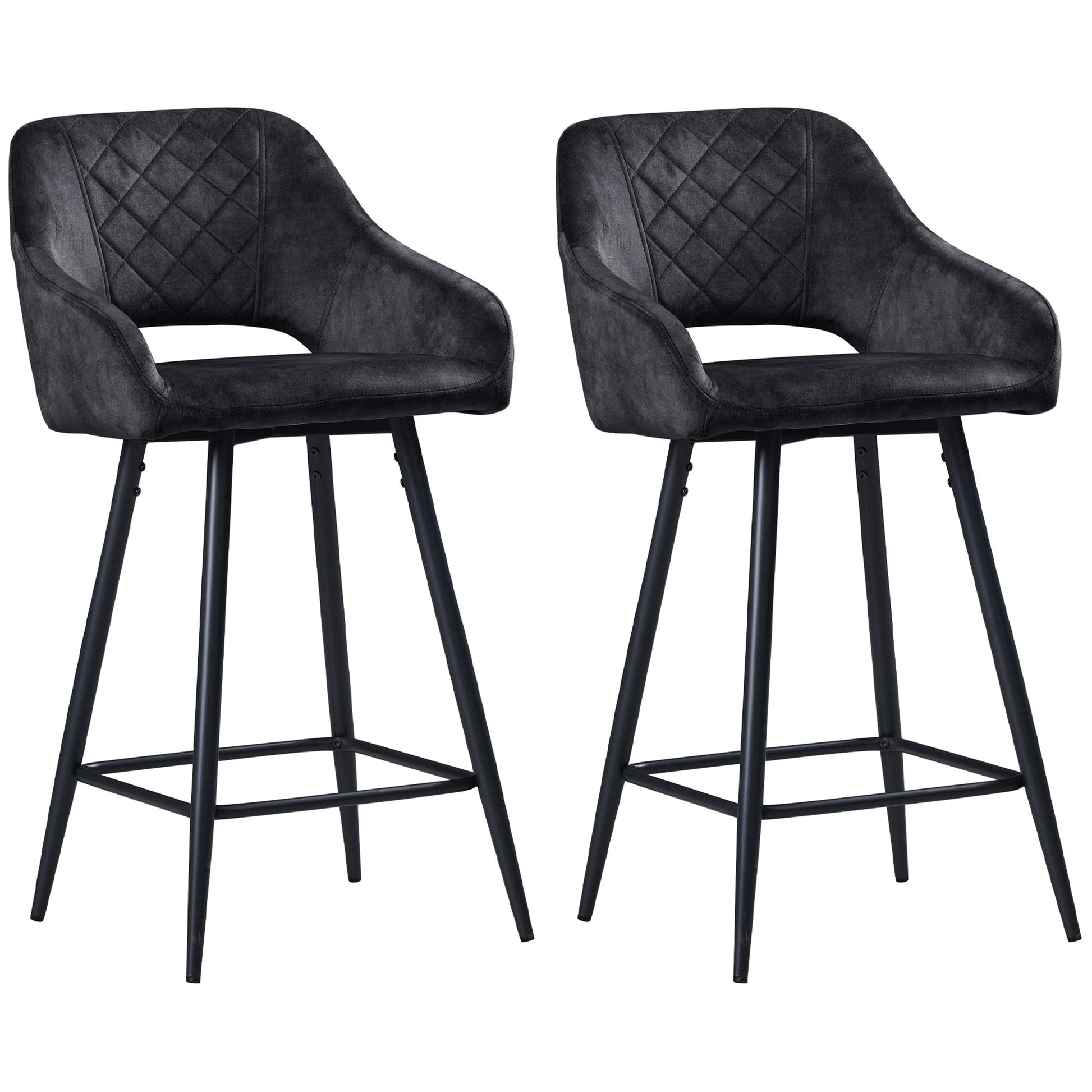 These two perfectly plush bar stools with backs, from HOMCOM, will sprinkle just the right amount of elegance into your home. The tub-shaped seats with high backs and armrests give you plenty of sitting room, wrapped in beautiful velvet-feel upholstery; paired with the padded seats, these stools for kitchen counter are very comfortable. They're fitted with metal bases for strong support - the bottom bars give the lower body a place to hold itself.