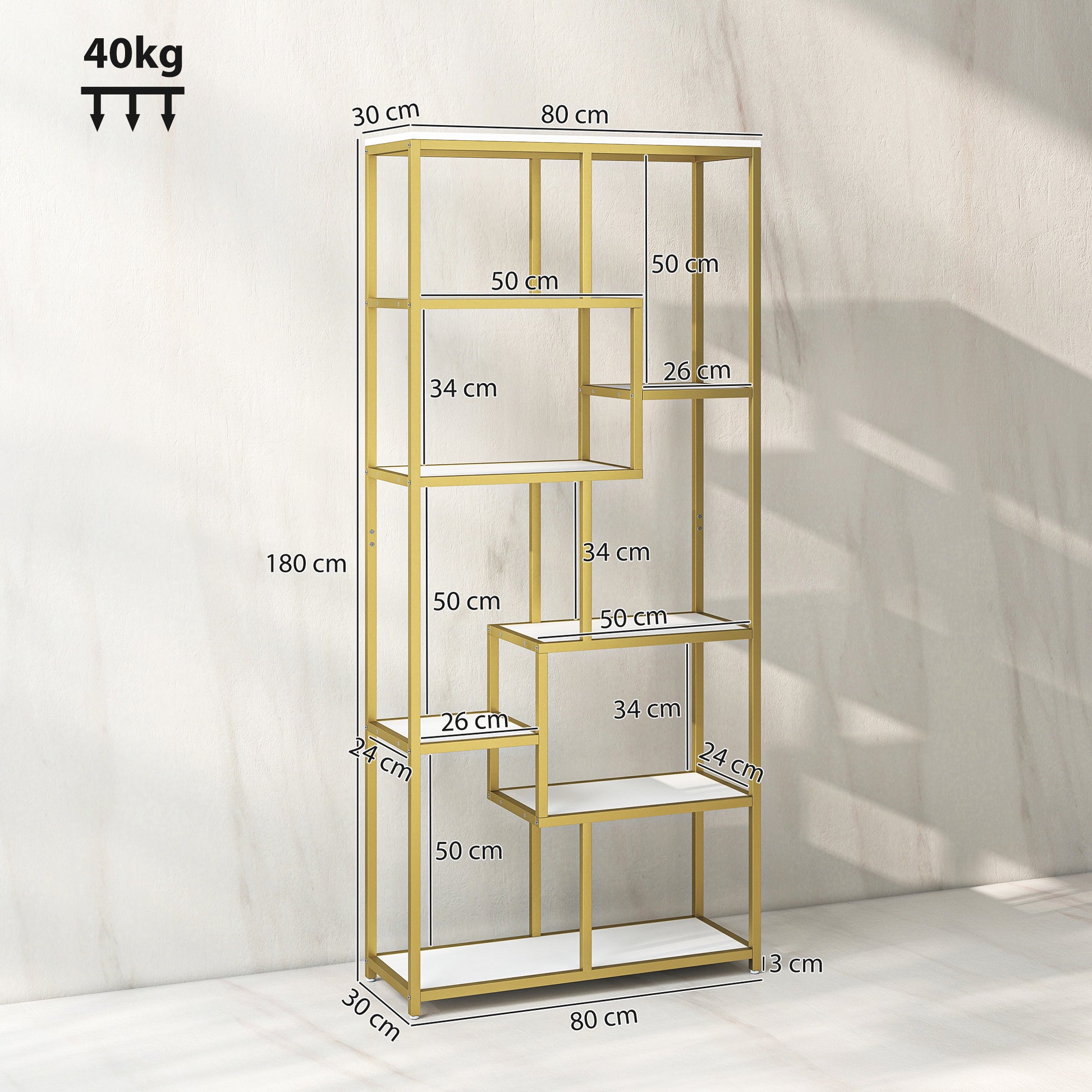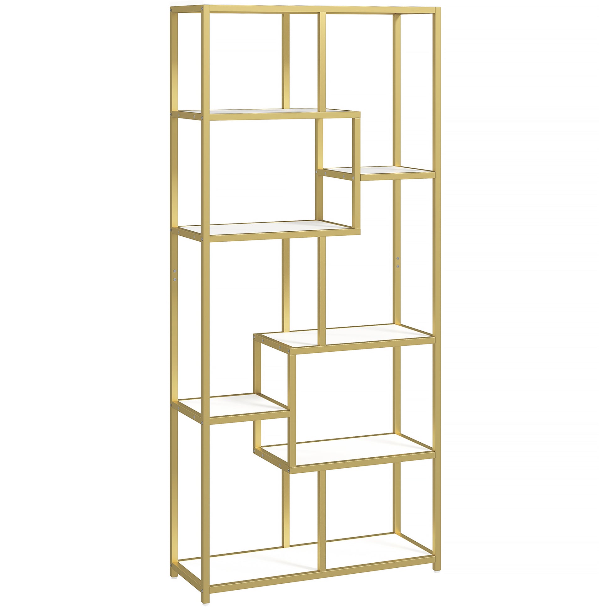 HOMCOM Seven-Tier Geometric Bookcase - White/Gold Tone