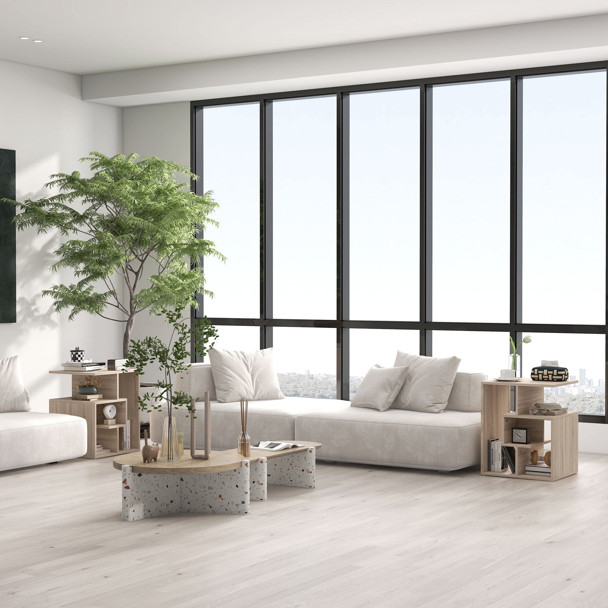 HOMCOM Side Table, 3 Tier End Table with Open Storage Shelves for Living Room, Bedroom, Set of 2, Oak