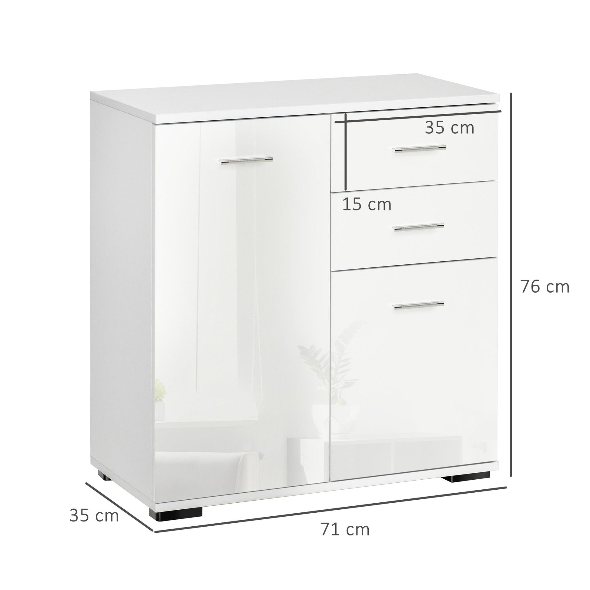 HOMCOM Sideboard, Modern Storage Cabinet with 2 Drawers, 2 Doors and Adjustable Shelf, Kitchen Cabinet for Living Room, Dining Room, High Gloss White