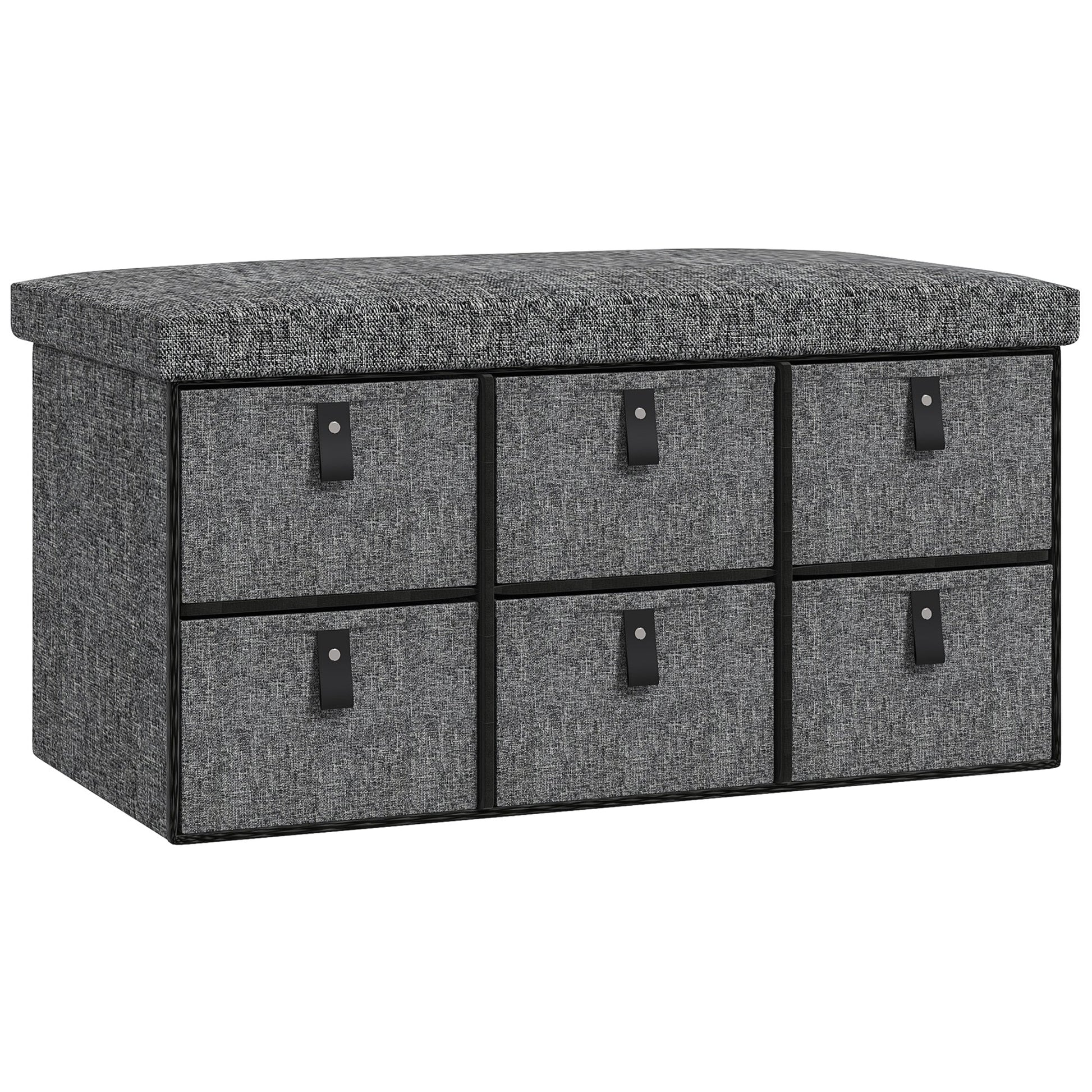 HOMCOM Six-Drawer Shoe Storage Bench, with Padded Top Seat - Dark Grey