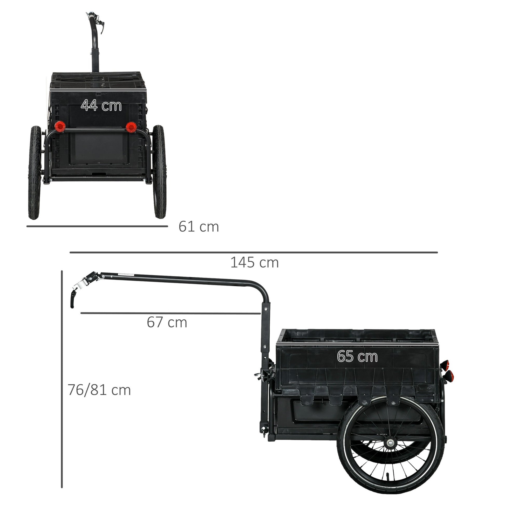HOMCOM Steel Trailer for Bike, Bicycle Cargo Trailer with 65L Foldable Storage Box and Safe Reflectors, Max Load 40KG, Black
