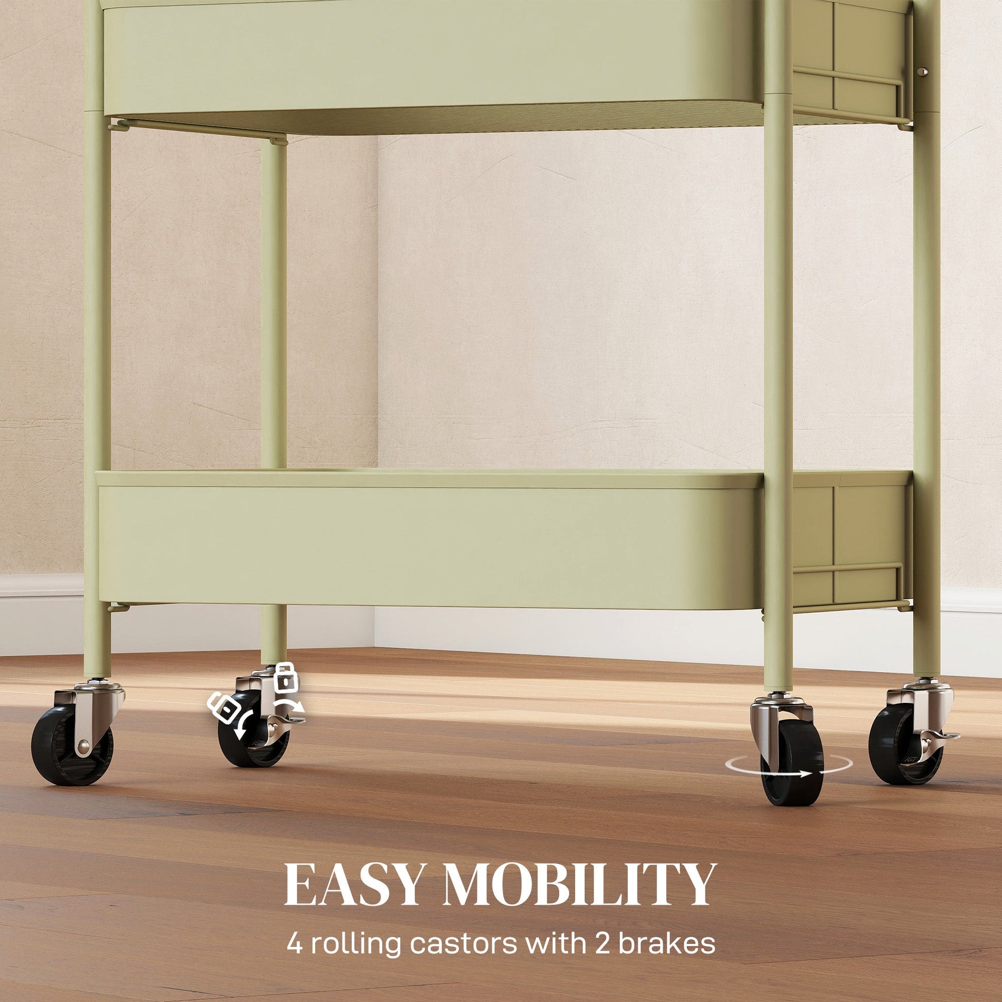 HOMCOM Three-Tier Steel Storage Trolley - Green