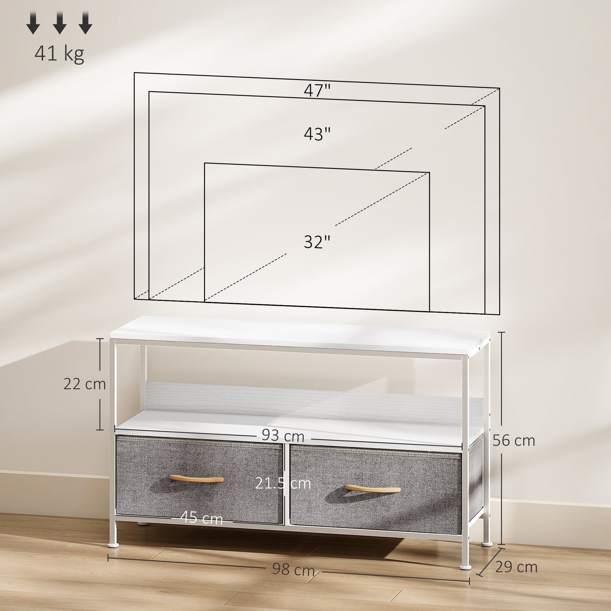 HOMCOM TV Stand Cabinet with 2 Foldable Drawers - White