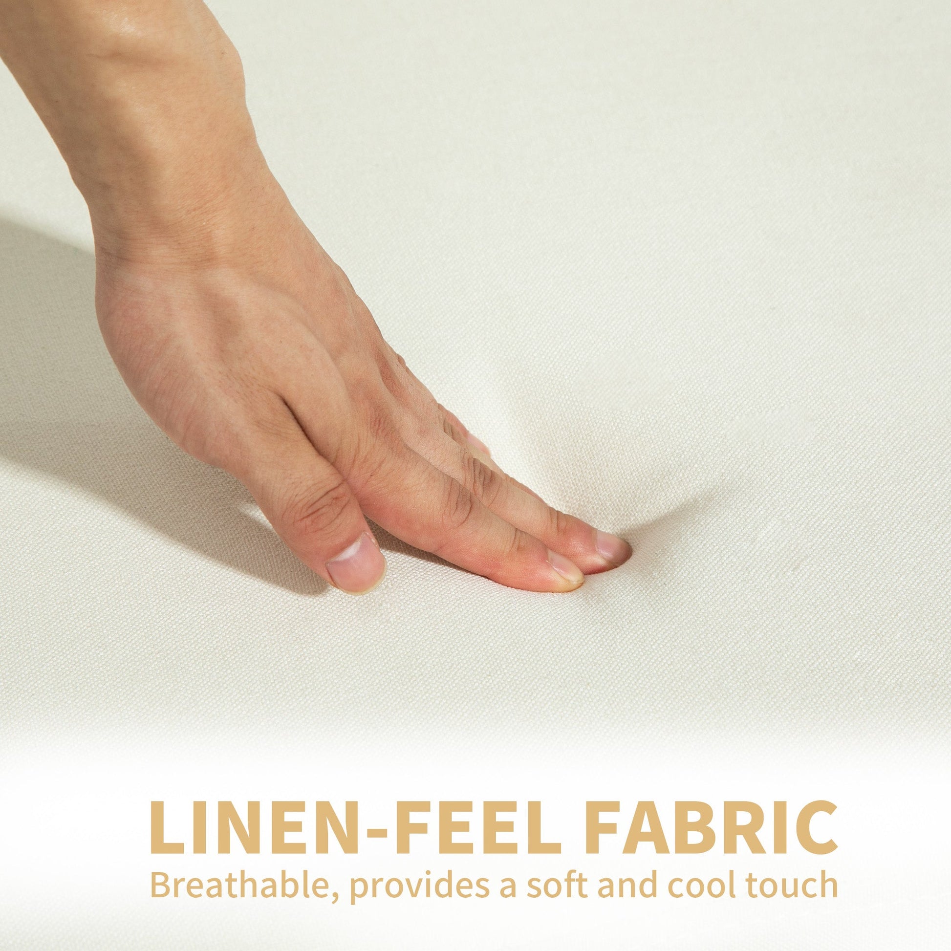 - Material: Linen (Polyester), Foam, Rubber Wood