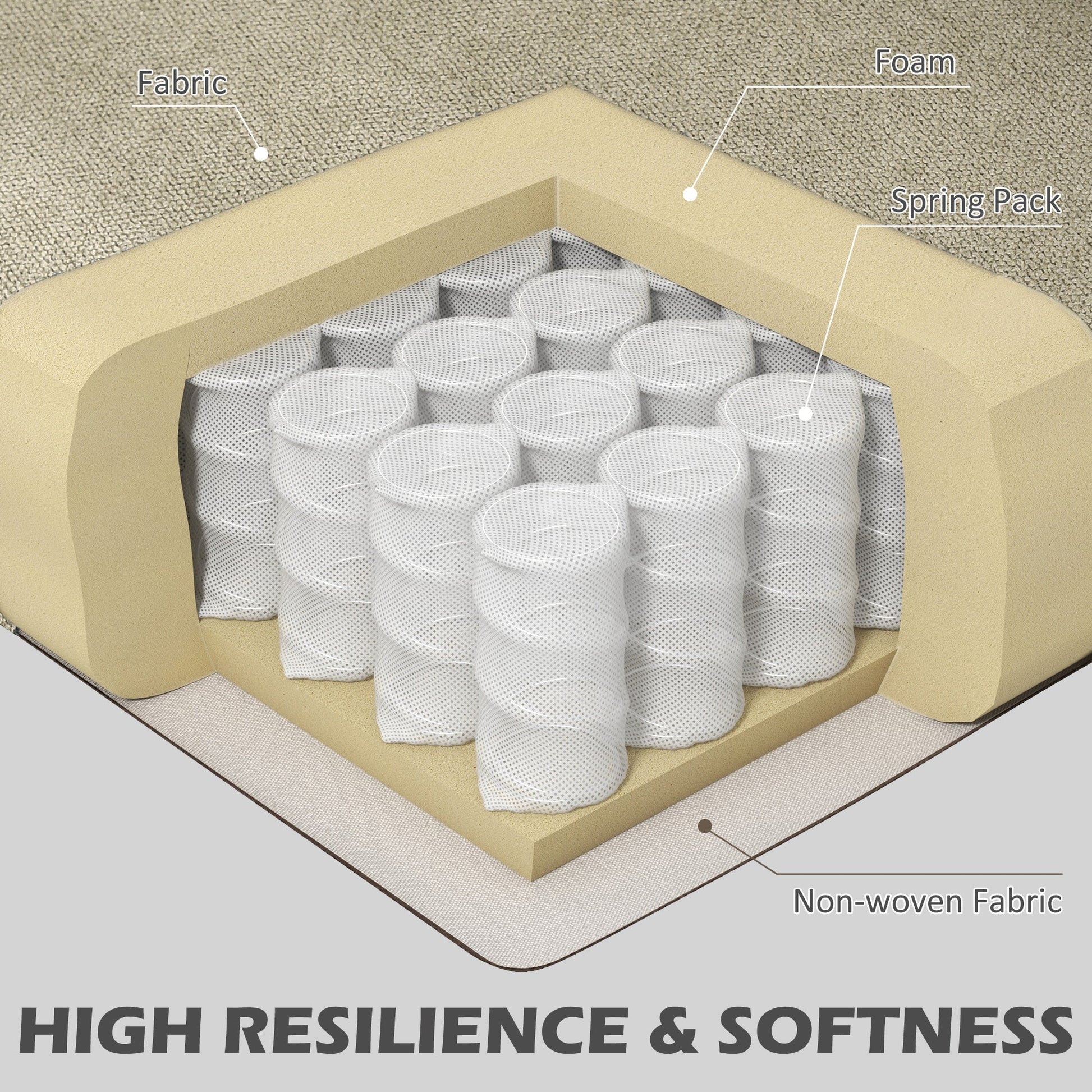 This HOMCOM armchair is a staple for any living space. Not only a beautiful piece, but it provides all comfort needed to relax and unwind, whenever you want. A wooden frame and legs mean a strong and supportive structure, with thick padding for you to sink into gently; the seat is 25cm thick so it's super soft! Adopting a classic look with its line-detailed wingback, curved arms and neutral colour, this comfy chair is a must for the seasons ahead.