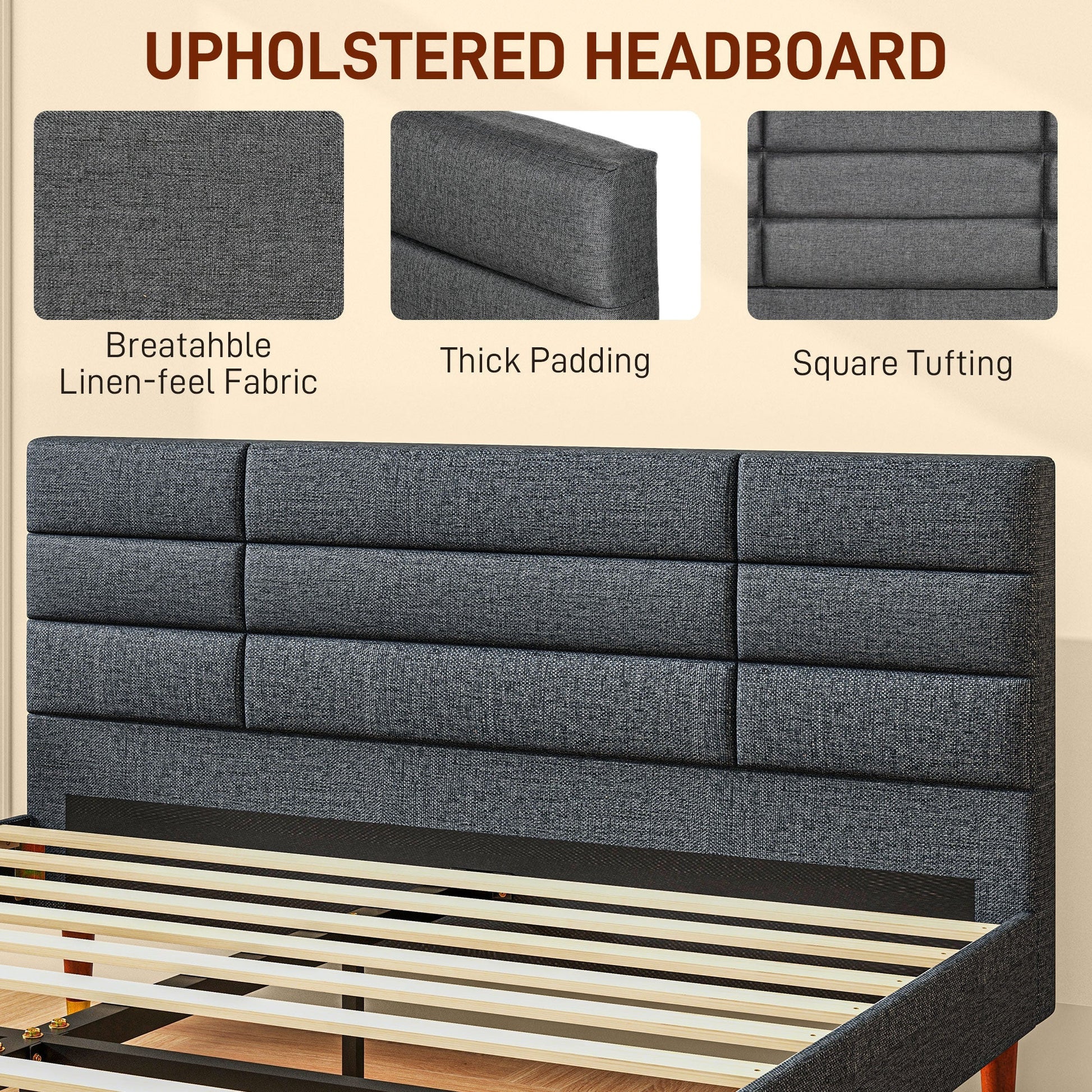 HOMCOM Upholstered King Bed Frame 154W x 206D x 87Hcm with Slats - Grey
