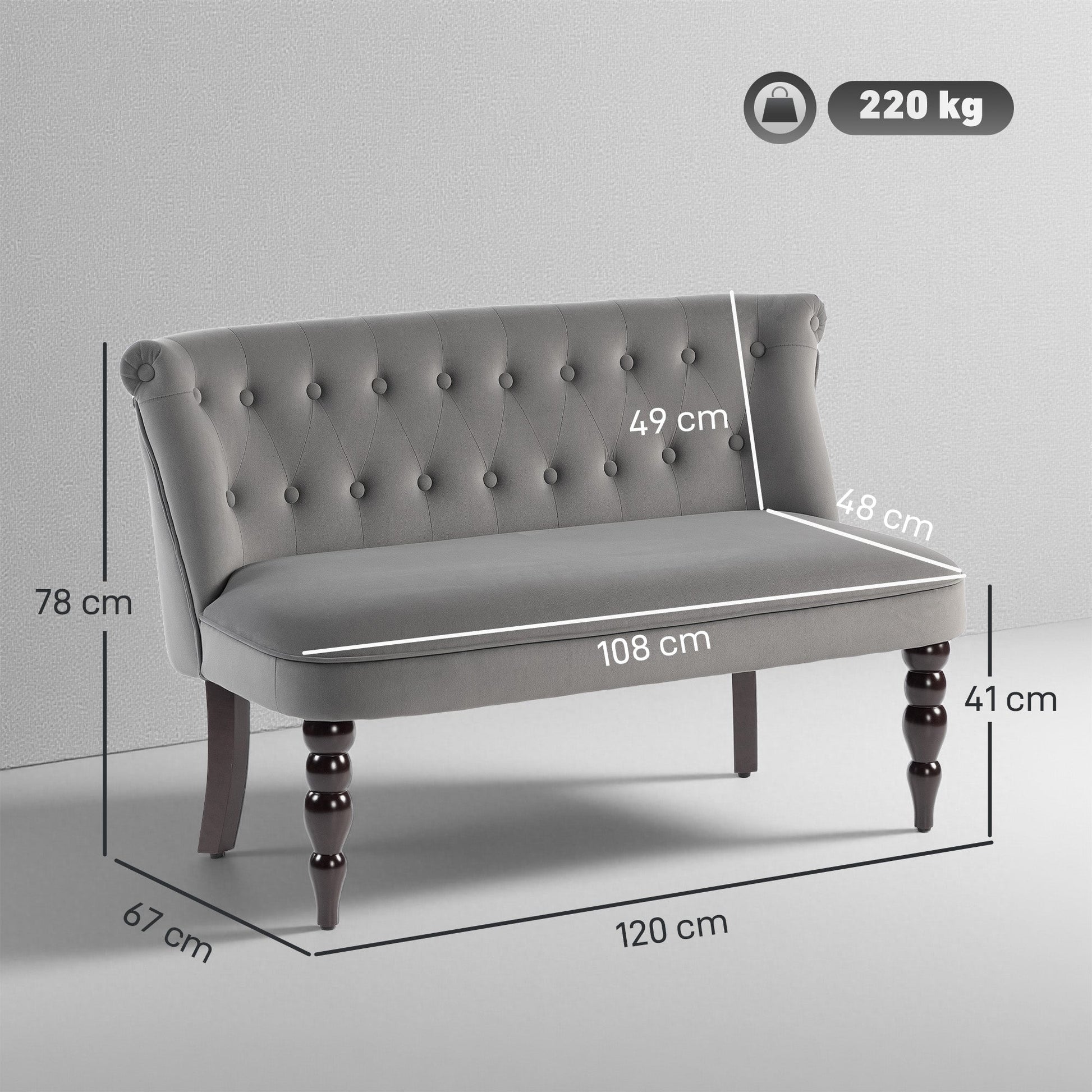 HOMCOM Velvet 2 Seater Sofa, Button Tufted Wingback Loveseat with Rubber Wood Legs for Living Room, Bedroom, Charcoal Grey