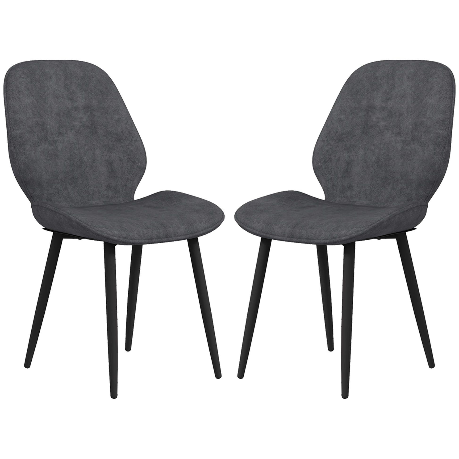 Relaxed style - two times. These set of two HOMCOM dining chairs bring effortless matching style into your home. Armless design and slanted back make it a pleasure to sit on. The foam padding for comfort, with velvet-feel upholstery soft on the skin. Powder coated steel legs for strong support, complete with adjustable foot pads.