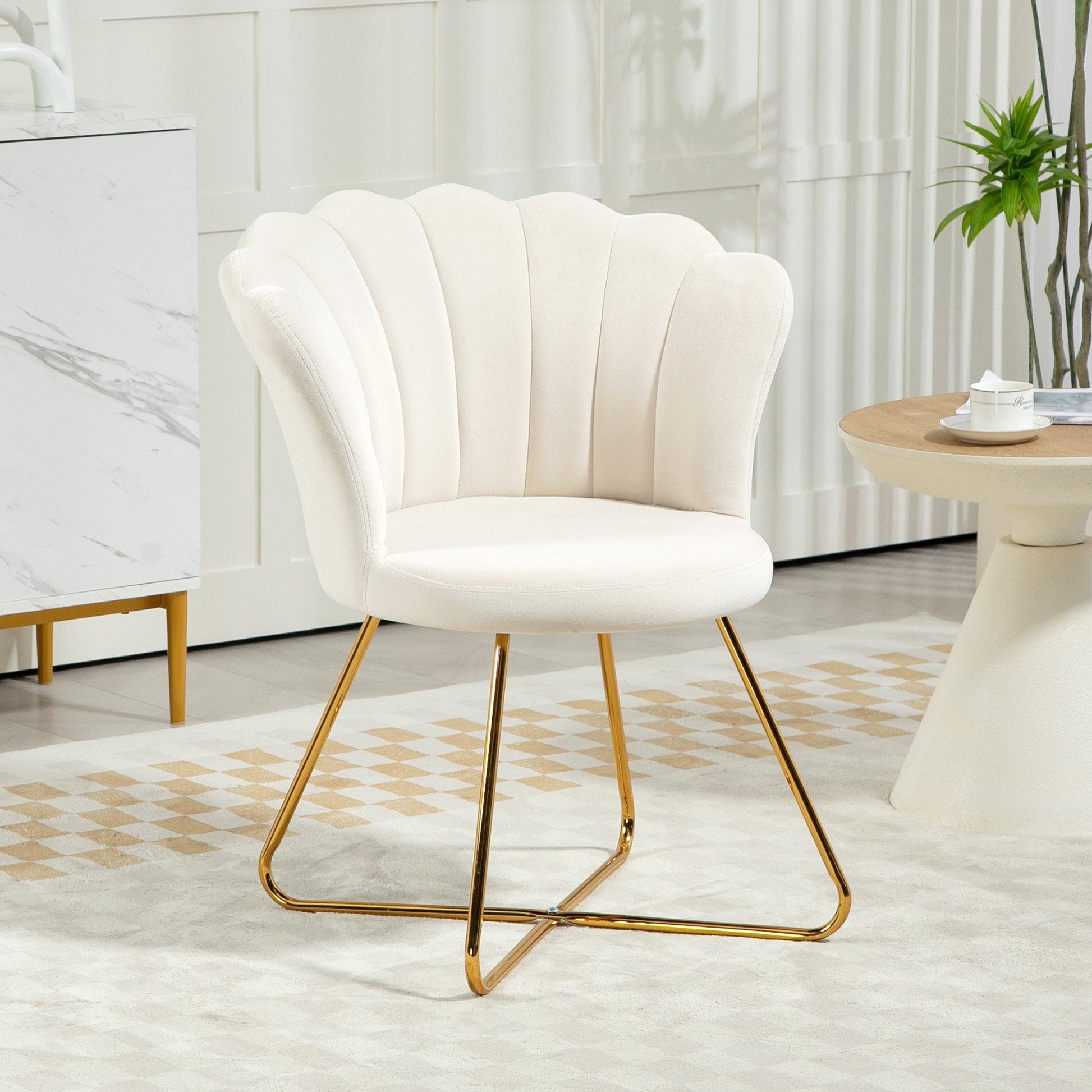 HOMCOM Velvet-Feel Lotus Petal Accent Chair - Cream