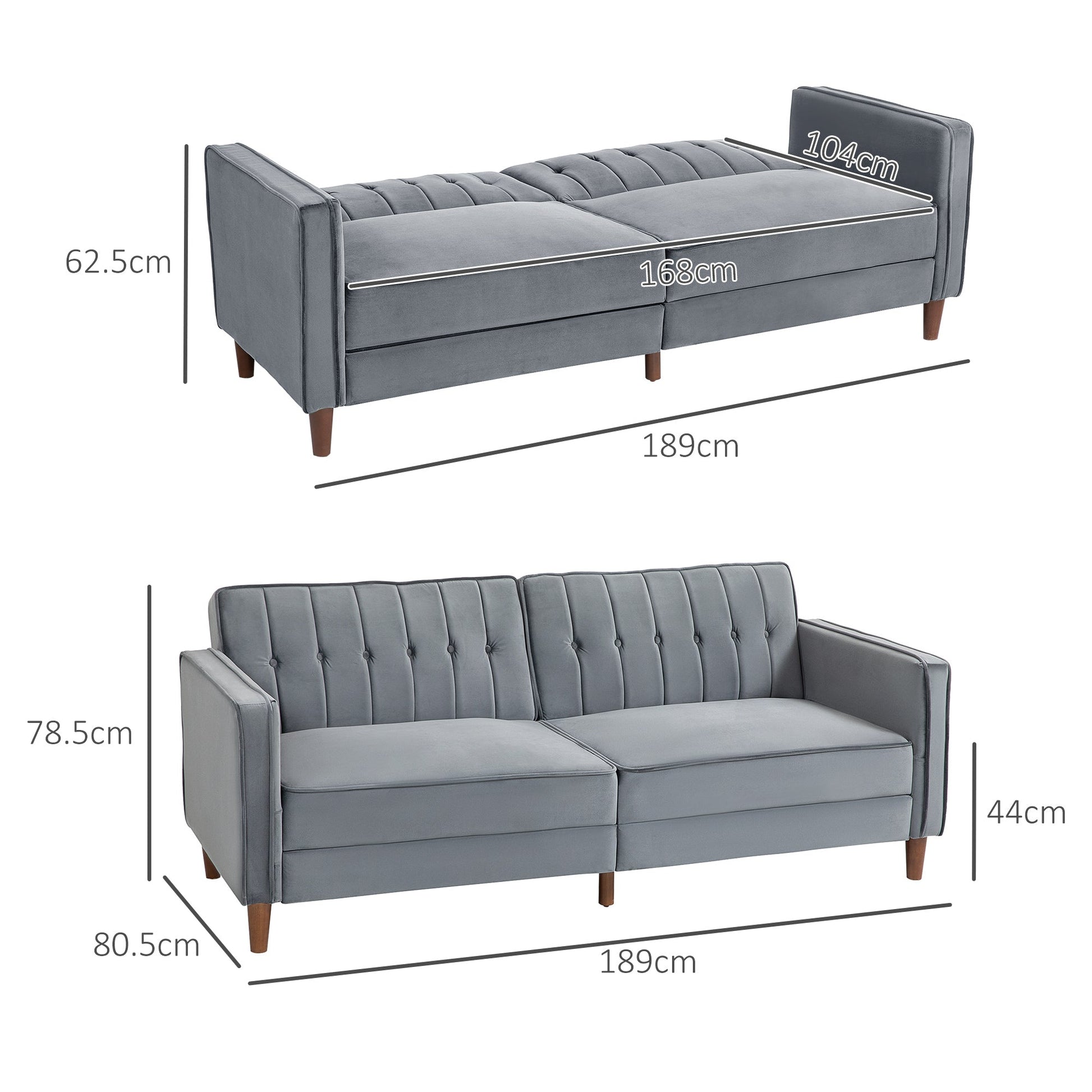 - Overall Dimensions: 189W x 80.5D x 78.5Hcm (sofa), 189W x 104D x 62.5Hcm (bed)