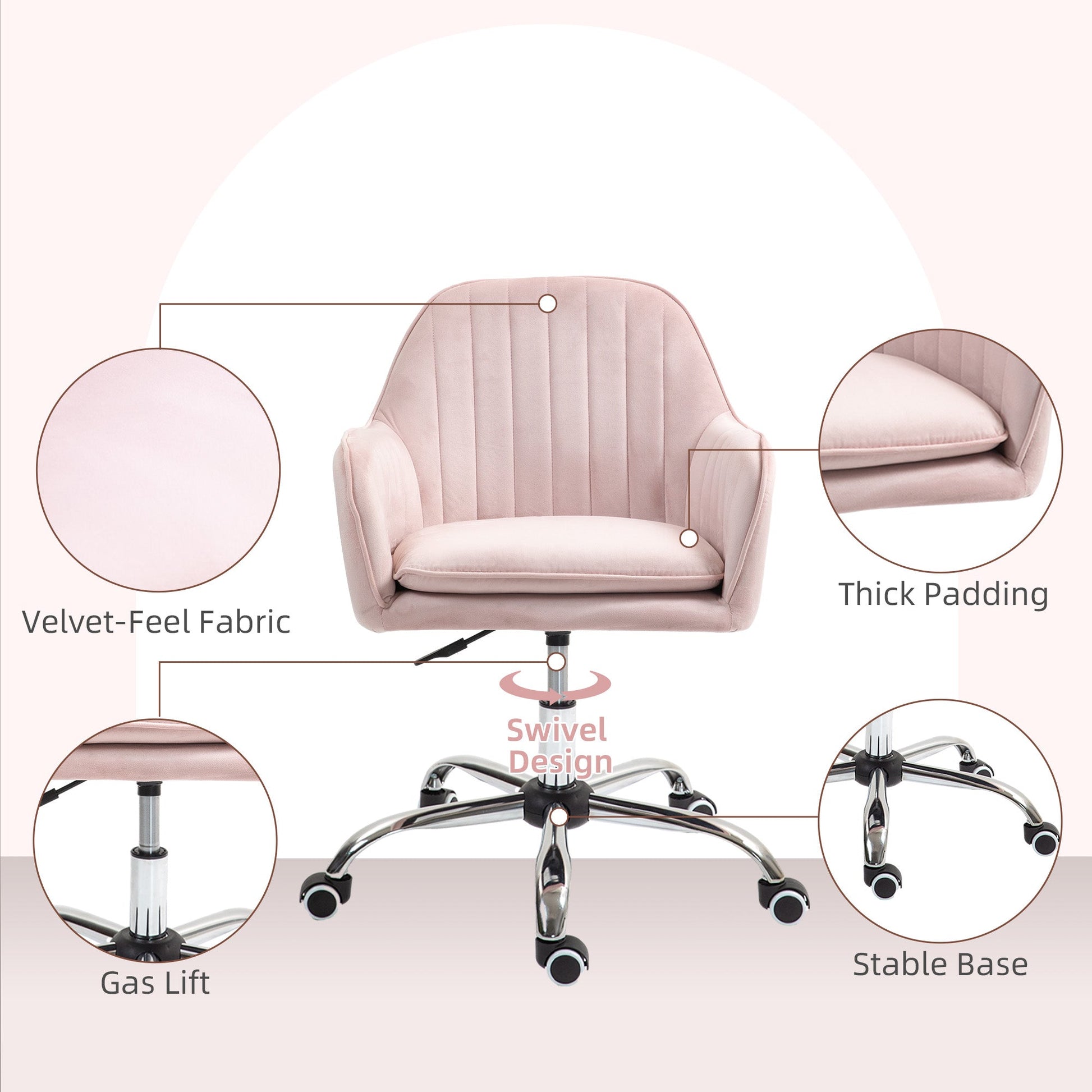 HOMCOM Velvet-Feel Tub Office Chair, with Seat Cushion - Pink