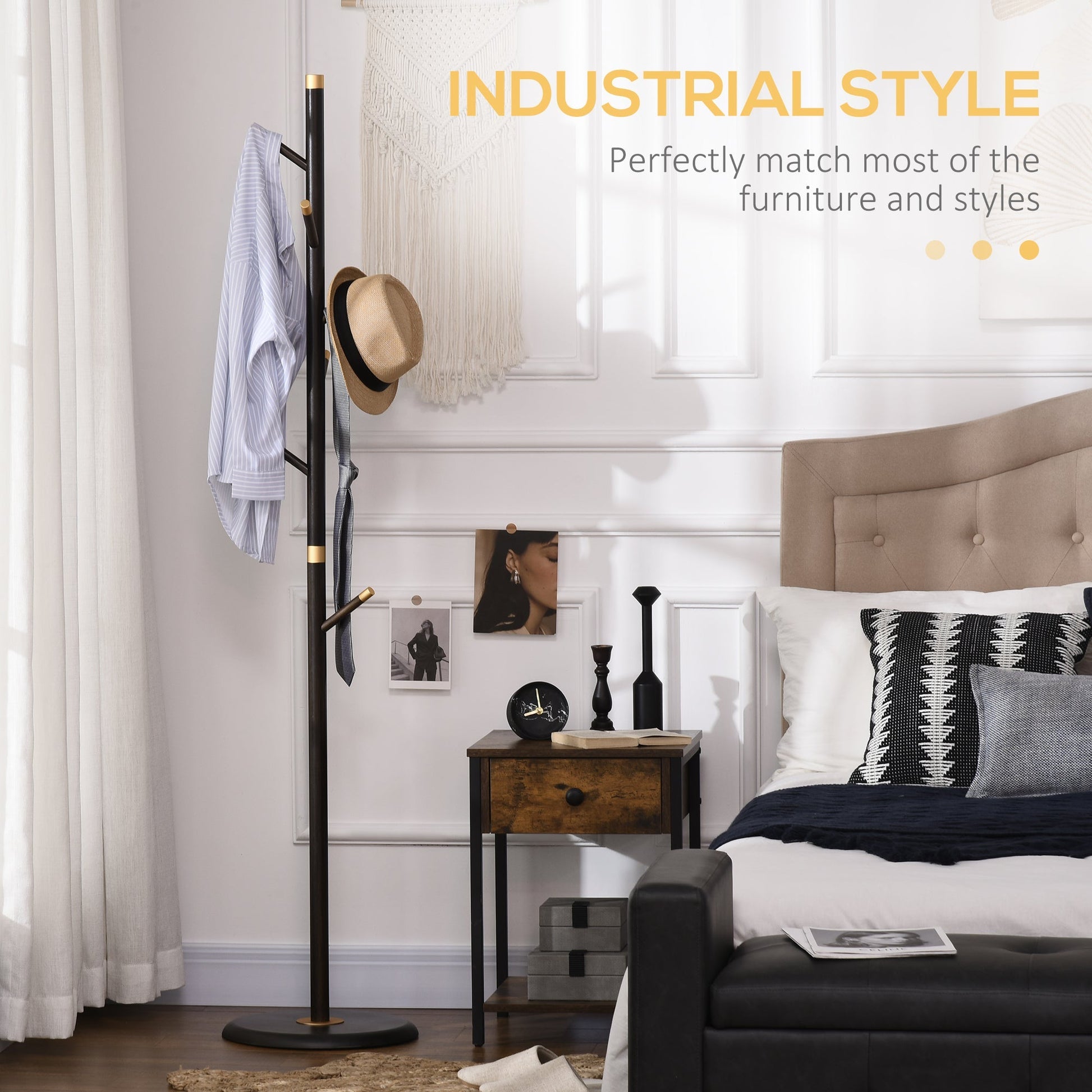 HOMCOM Vintage Coat Rack Stand Freestanding Hall Tree with 6 Hooks Bamboo Frame for Entryway Hallway Bedroom Walnut