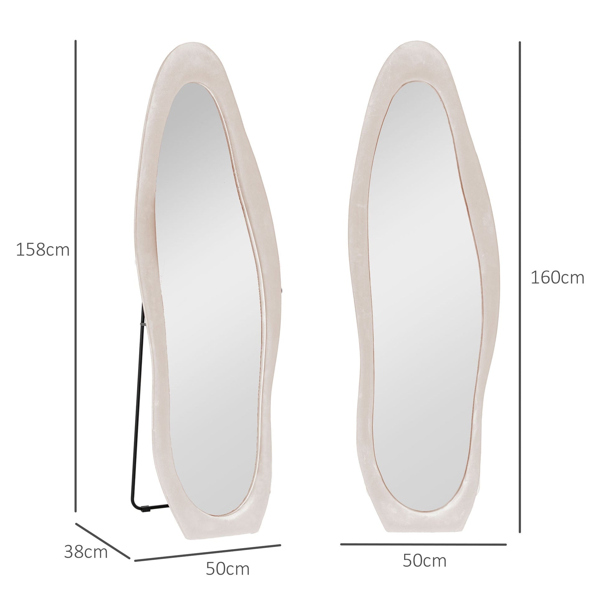 Fun and funky, this HOMCOM wavy mirror creates a statement in your home and beyond. The wavy shape, block colour and velvet-feel finish of the frame all work together to give it a bold, retro look; let it work alongside your furniture, or give it a place which allows it stand out and command attention forever more. Thanks to the full length and thick glass, you can see yourself fully and clearly: you'll be leaving your home confidently forever more.
