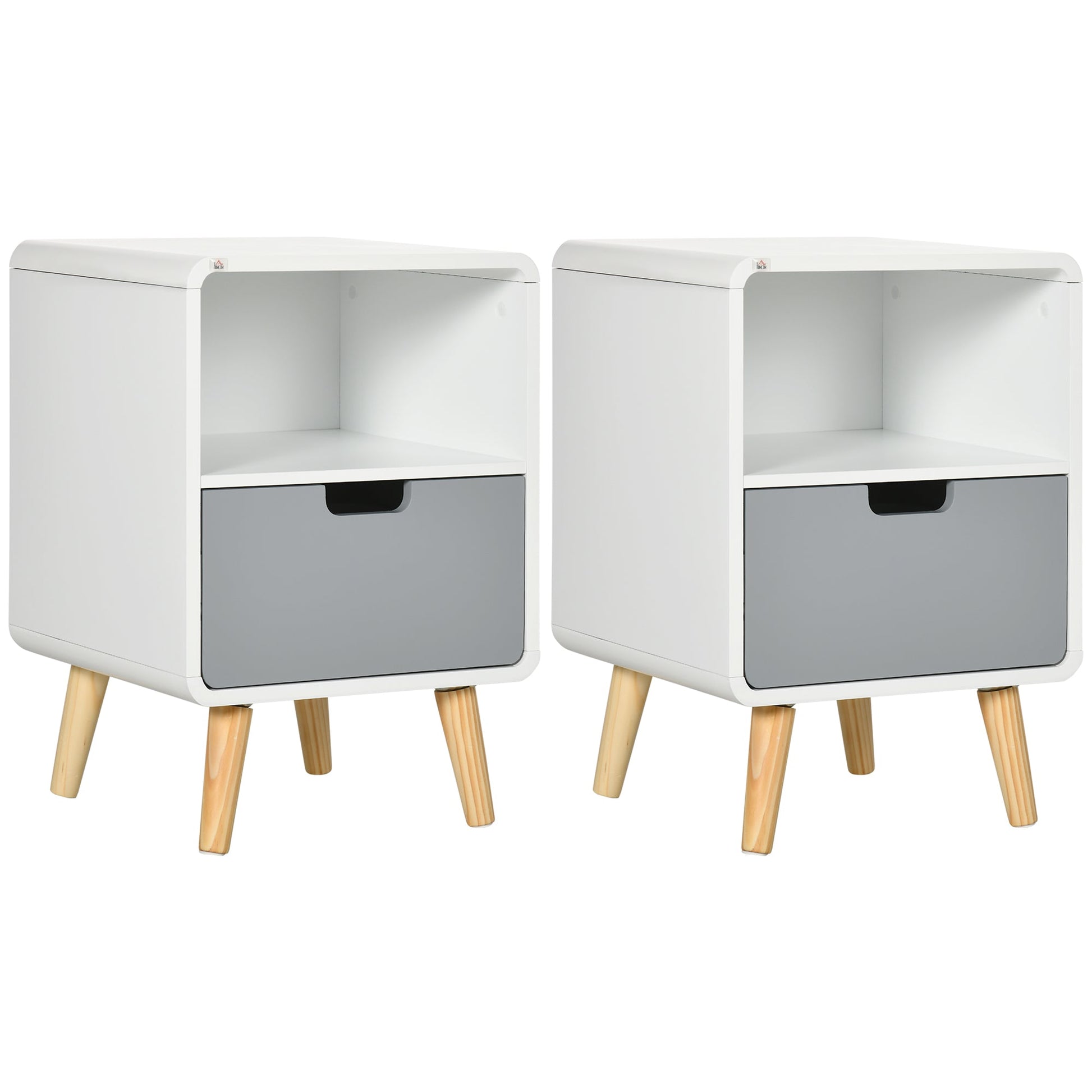 HOMCOM Wooden Bedside Table End Nightstand With Drawer Wood Lamp Desk Storage Unit Bedroom Scandinavian Nordic Style, Set of 2