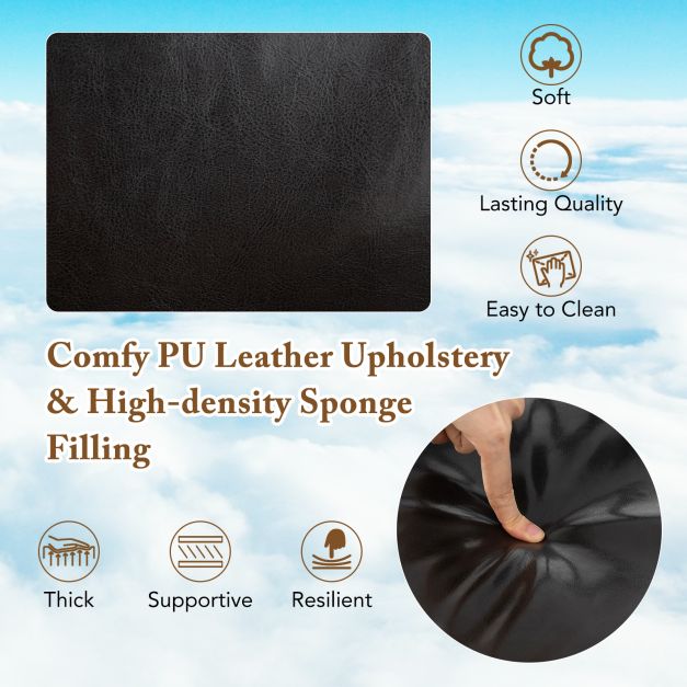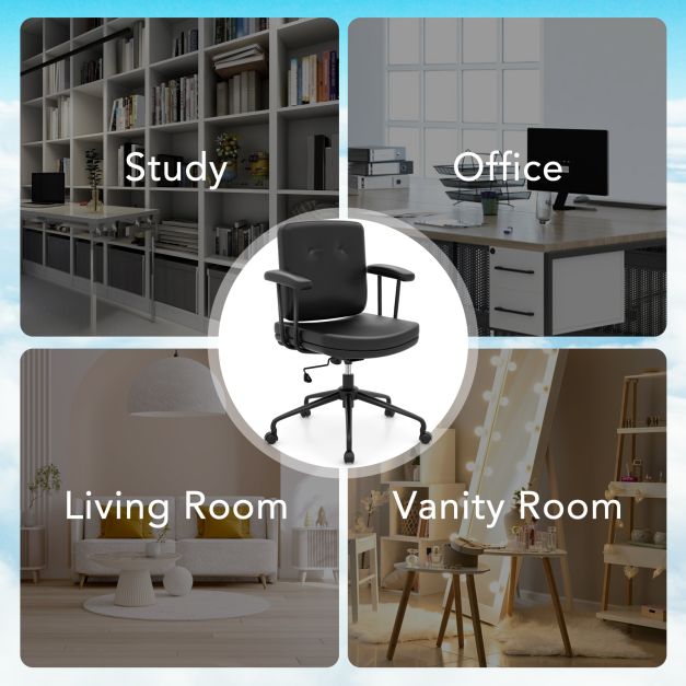 With its dark brown PU leather upholstery, this home office chair brings an air of mid-century modern chic to your space. Enjoy comfy seating experience with its ergonomic backrest, thick-padded cushion, and supportive armrests, all packed with high-density sponge. Customize your comfort effortlessly with the adjustable seat height range of 47-55 cm. Its sturdy metal base comes with 5 universal wheels, offering both mobility and a reliable support. Perfect for homes, offices, dorms and more, this desk chair offering maximum comfort with minimal space taken! Quality Upholstery: Upholstered with brown PU leather, this stylish home office chair exude a mid-century modern vibe that easily enhances your living space. It feels soft to the touch, and is easy to clean for maintaining a long-lasting appeal. Ergonomic Support: The extended backrest of the desk chair supports not only your back, but also your lumbar. Plus, the padded seat cushion, backrest and armrests are filled with resilient high-density sponge, offering a comfy seating experience. Customizable Comfort: Featuring a robust class 3 gas cylinder, the computer chair offers a range of seat height from 47-55 cm, easily catering to different users and needs. You can easily adjust or lock the height with a flip of the adjustment lever. Sturdy Base: With its 5-claw powder-coated metal base, strong pivot point and reinforced frame, the sturdy office chair is built to withstand years of use. Supporting up to 110 kg, it makes a safe and reliable choice for various daily tasks. Mobility and Compact Size: Measuring 64 x 64 x 88 cm (L x W x H) at its lowest height, this convenient swivel chair is an ideal choice for home offices, vanity rooms or dorms. Equipped with five 360° universal wheels, it ensures mobility across rooms.