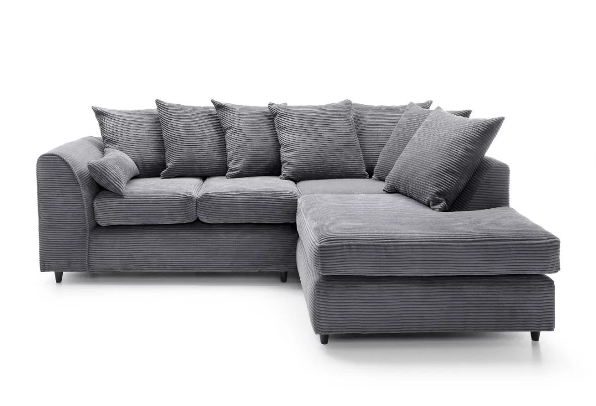 Jasmine Jumbo Cord Corner Sofa - Rigth Arm Grey
