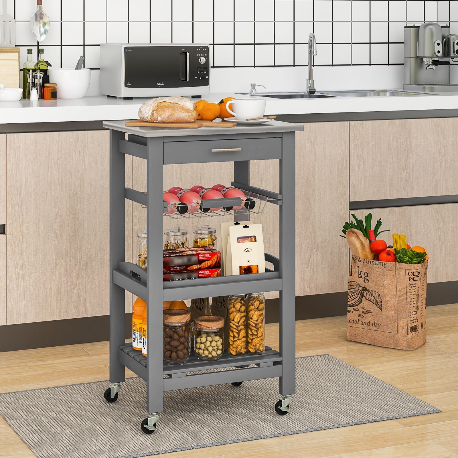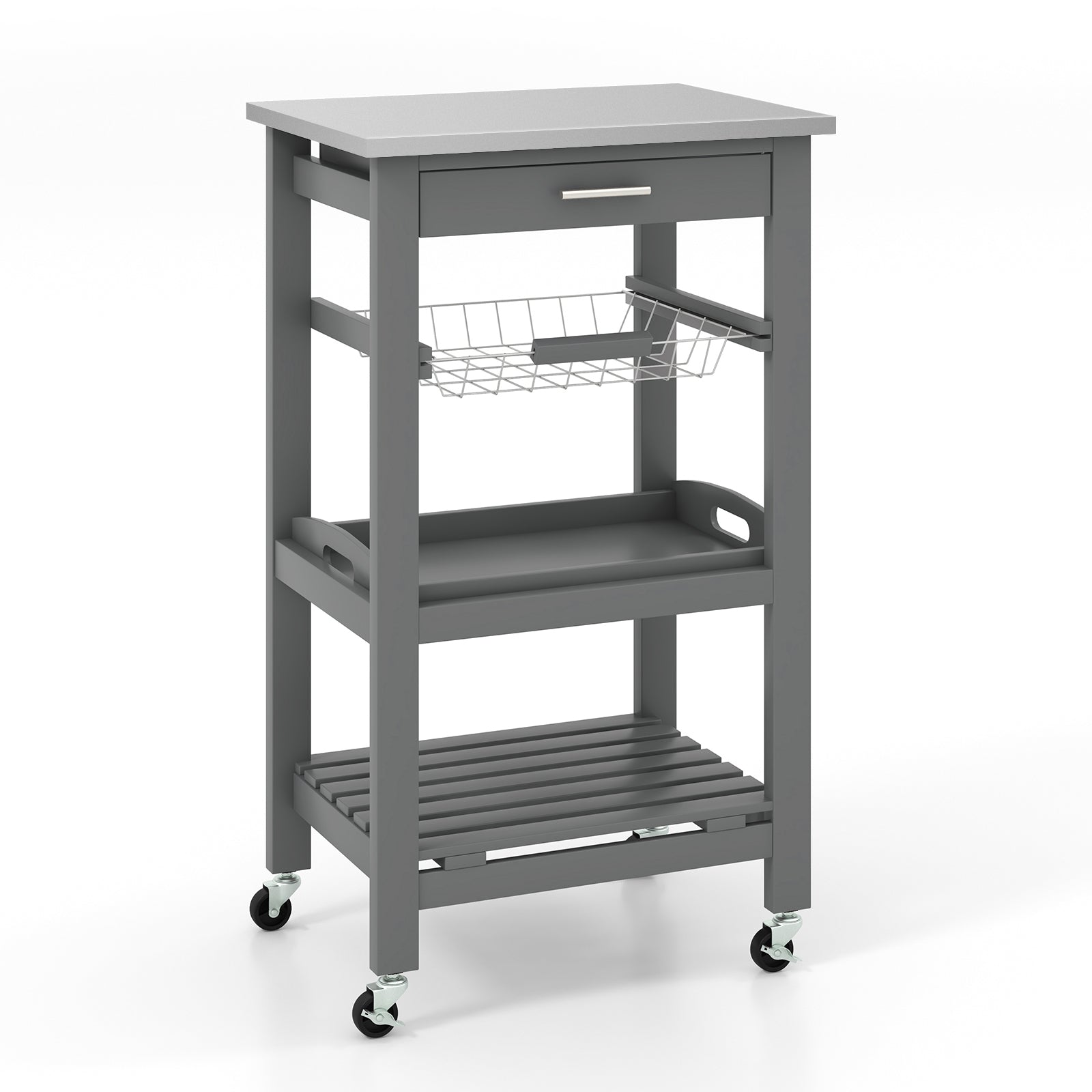 Kitchen Island Cart with Stainless Steel Tabletop and Basket-Gray