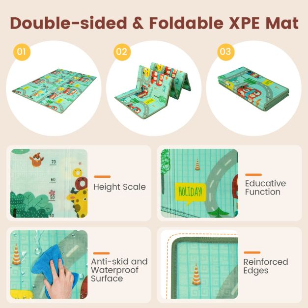 Our large baby playpen will be a perfect place for your little ones to sit, crawl, walk, standor play. 1 basketball hoop, 2 soccer nets, 4 pull rings and 50 ocean balls offer 0-3 years old toddlers hours of fun. It has zippered doors and all-around mesh wall to protect kid’s safety. Besides, a double-sided baby mat with anti-skid surface can ensure higher security. Safe oxford fabric and solid metal pipes consist of this baby playpen, which is durable and strong. To add more stability, we equip it with 4 suction cups. Furthermore, there is a portable bag for convenient storage. Bullet Point: Interesting Baby Playpen: This baby playpen measures207 x 142 x 69 cm (L x W x H)(without basketball hoop or soccer net), which is large and spacious enough for 7-8 kids to sit, crawl, walk or stand. 4 pull rings help kids to learn how to stand. Besides, it features 1 basketball hoop, 2 soccer nets and 50 ocean balls to bring them more fun. Comfortable XPE Baby Mat: It also comes with a baby play mat with double-sided colorful pattern and baby growth chart ruler, which is great for babies’cognitive ability. Plus, made of child-friendly XPE materials, the play mat with non-slip surface is safe and comfortable enough for babies to crawl or sit. Zippered Doors and Mesh Wall: Our baby play yard offers your baby a safe playing area. Safety doors with external zippers can only be opened by outside adults. Additionally, all-around mesh wall can protect kids from potential dangers. Parents can also see babies through the visible mesh to ensure their safety. Safe Material and Stable Structure: Our baby play yard is covered with BPA-free oxford fabric, which is comfortable to touch and safe to use. Corner protection covers avoid accidental bumping. What’s more, durable metal pipes and 4 non-slip suction cups prevent overturning or wobbling. Portable Design and Dimension: When not in use, this play yard can be easily disassembled into narrow shape to save more space.And it also includes a carrying bag to make the detached playpen easy to store and transport. The carry bag size is 96 x 20 x 18 cm (L x W x H).
