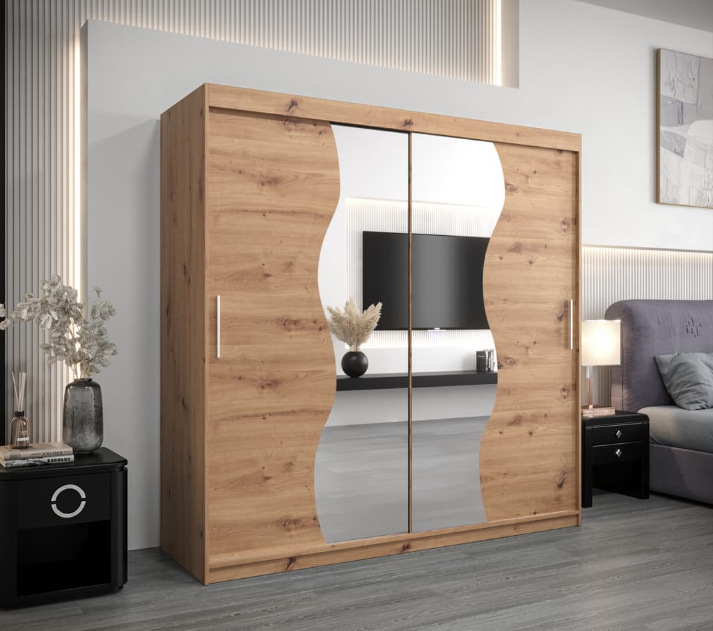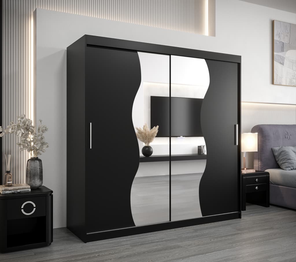 Artemis 2-Door Mirrored Sliding Wardrobe 180cm - Matt Black, Brown or Sonoma Oak