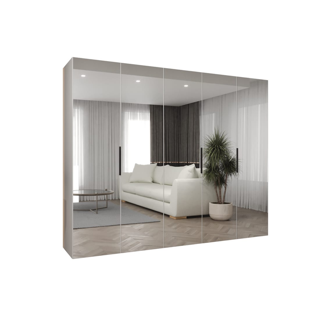 Sliding Wardrobe LANTAU 4 Door Mirrored Wardrobe White 316cm