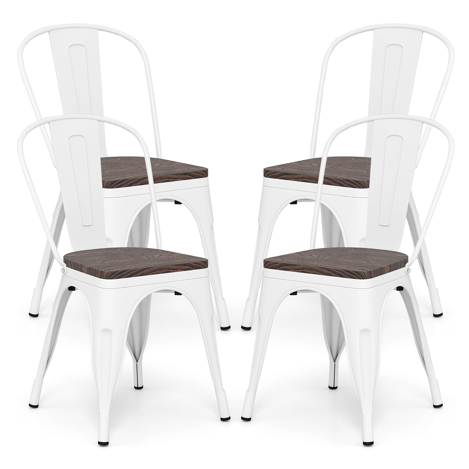 Metal Dining Chairs Set of 4 Stackable Kitchen Side Chairs-White