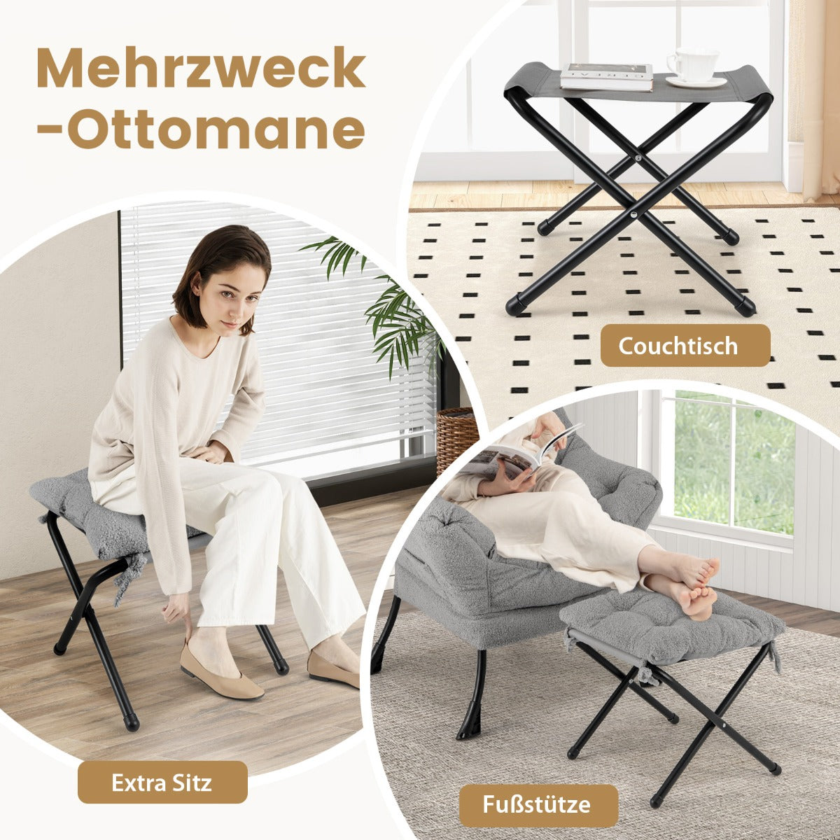 This modern accent chair with folding footrest and head pillow-gray is designed to keep your space organised while delivering reliable everyday functionality and a clean, modern look.