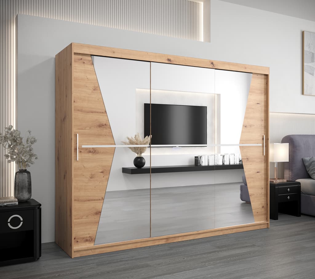 Zeus Sliding Door Wardrobe Available in Oak,Grey,White or Black 250 cm