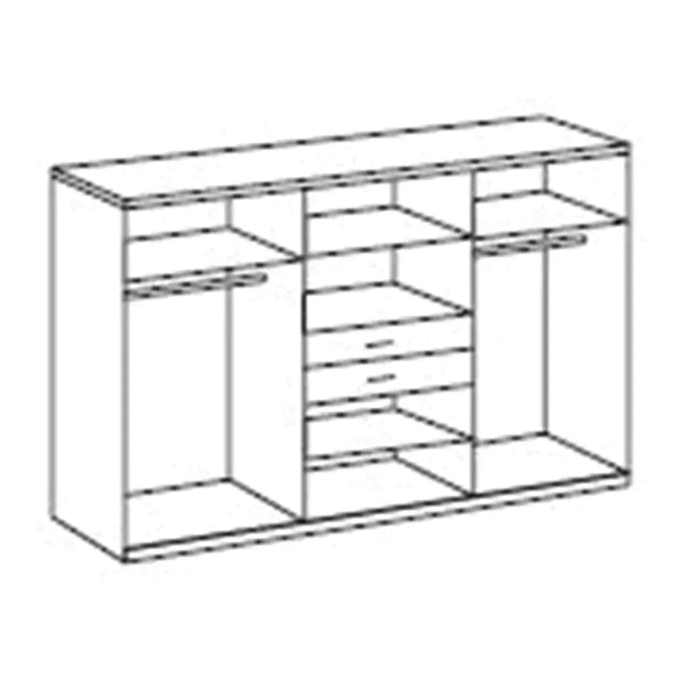 The ODENSE 6 Door wardrobe has a sleek and contemporary look and comes finished with mirrored door. The wardrobe has trendy handles which give it a modern look .The wardrobe has two hanging rail and a top storage shelf and it has total 5 shelves dividing in three sections.