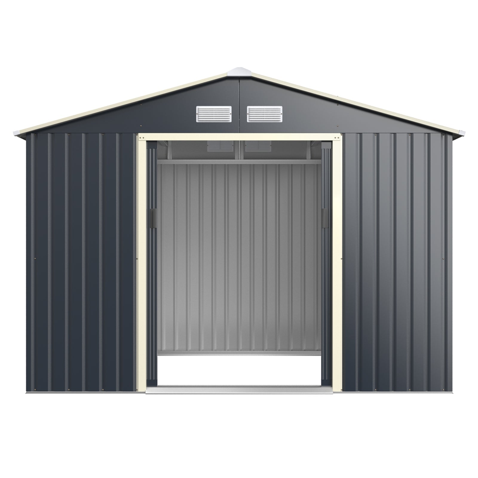 - 1 × Outdoor Storage Shed with 4 Vents and Double Sliding Door-277x181cm Storage Shed
