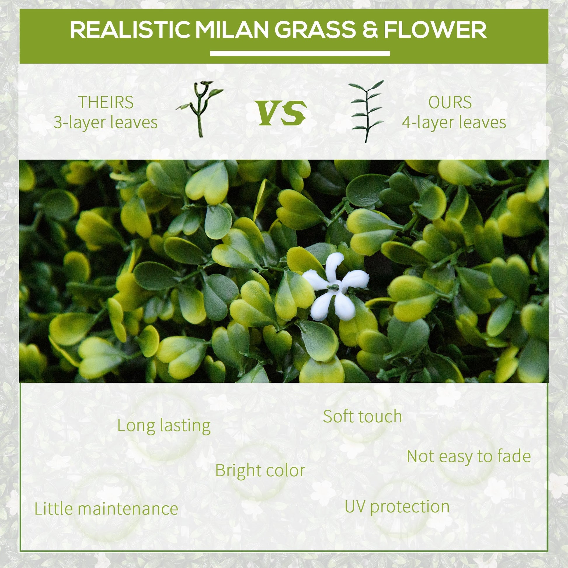 Outsunny 12PCS Artificial Boxwood Wall Panels 50cm x 50cm Grass Privacy Fence Screen Faux Hedge Greenery Backdrop Encrypted Milan Grass with White Flowers for Home Garden Backyard Balcony