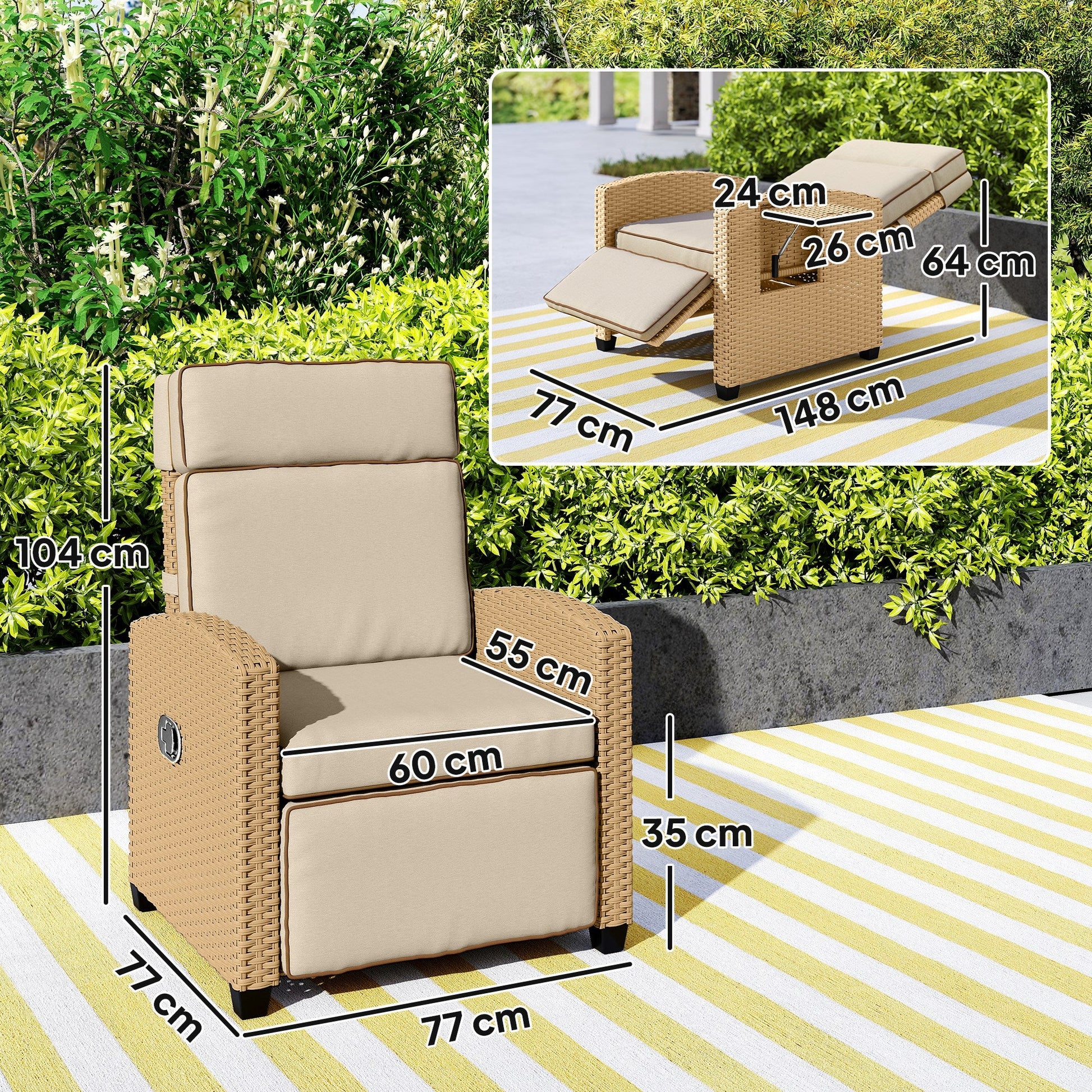 Outsunny 145 Reclining Rattan Armchair, with Footrest - Khaki/Beige
