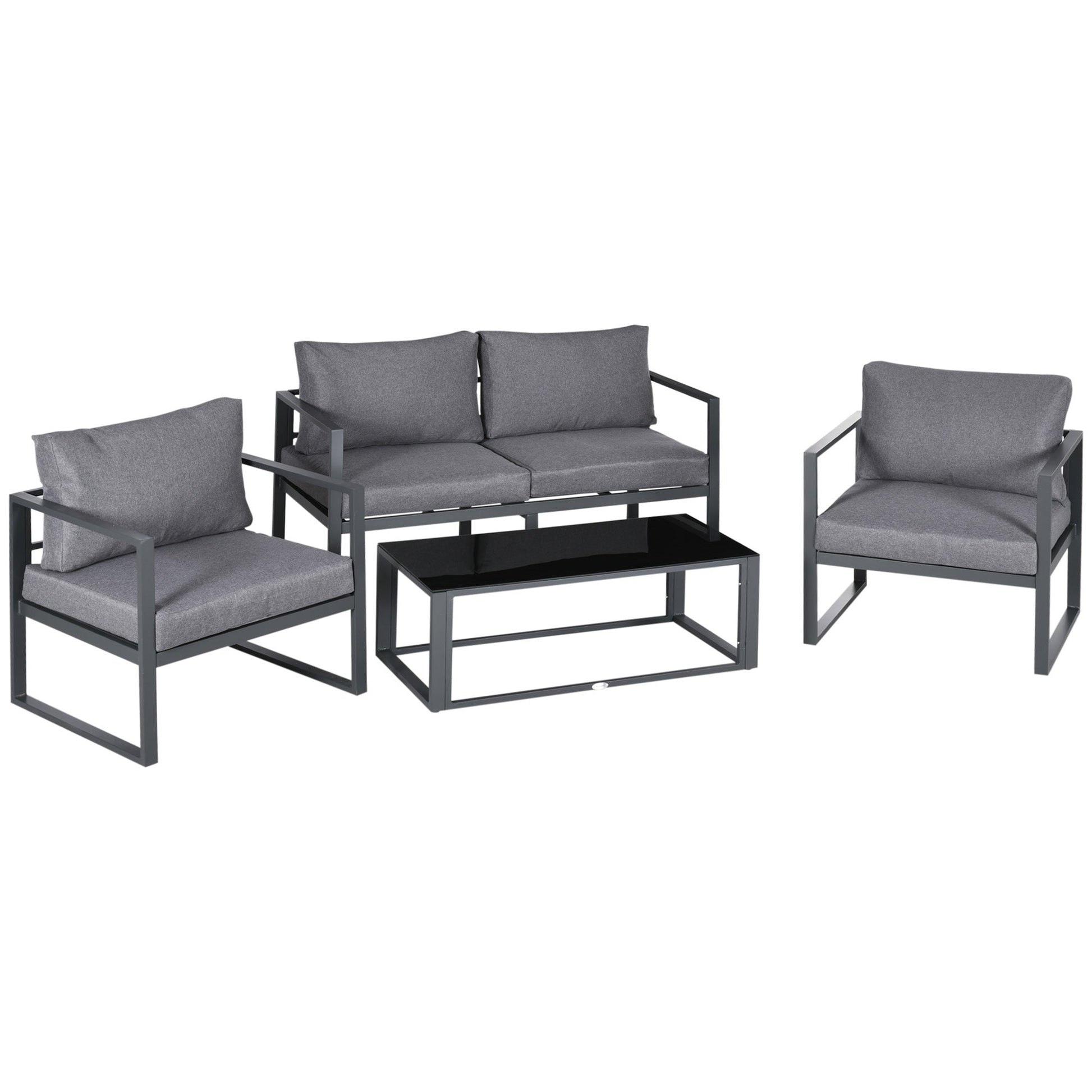 Outsunny 4 Pieces Garden Sofa Set 2 Single Armchair 1 Bench & Side Table Set Aluminium Frame Patio Furniture with Cushions Grey