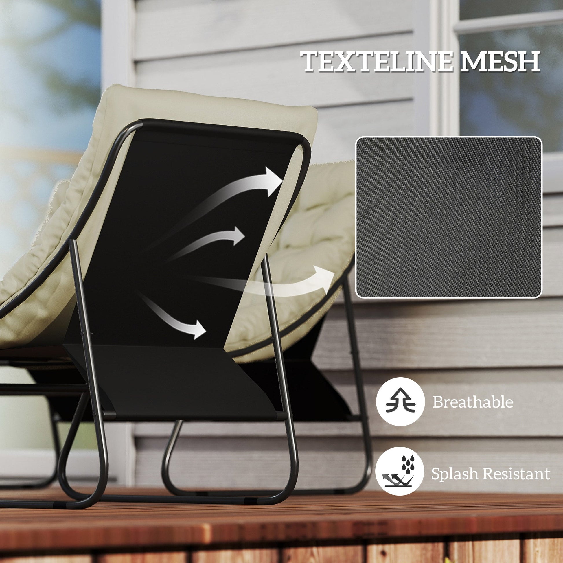 - Materials: Steel, Texteline Mesh, Foam, PE Rattan, PP Cotton, Tempered Glass