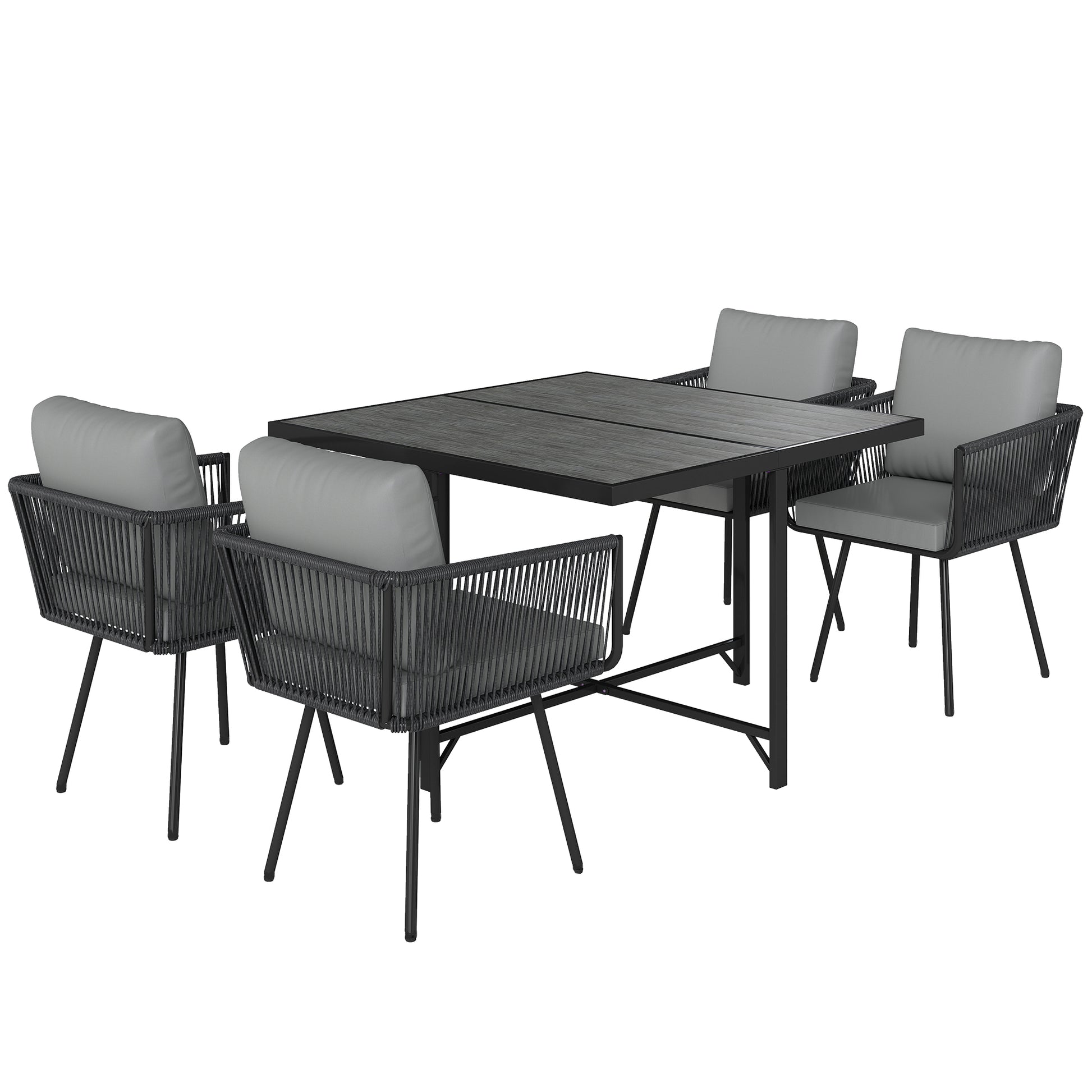 Outsunny 5 Piece Garden Furniture Set, Garden Dining Set with Wood-Plastic Table and 4 Stackable Chairs, Light Grey