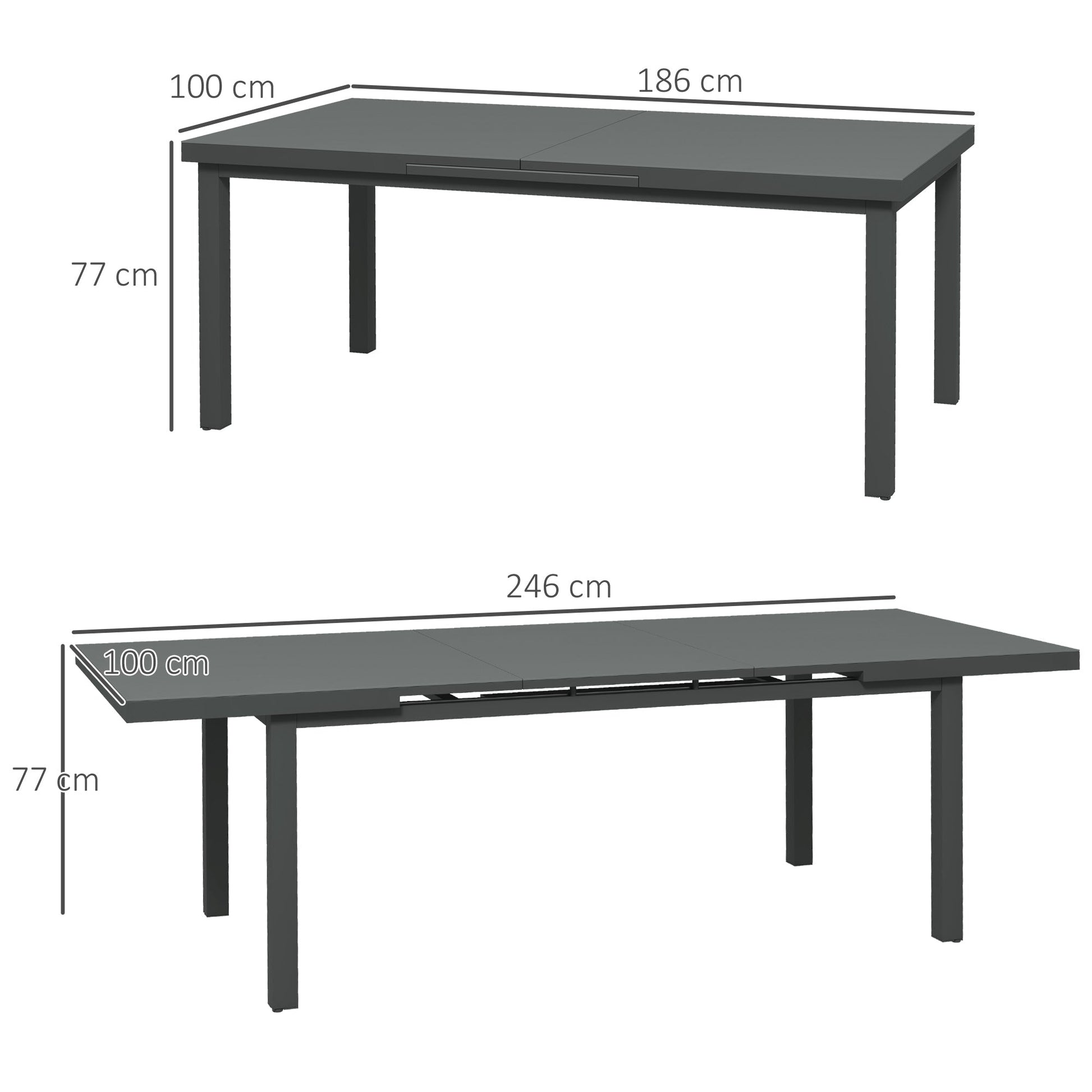 Outsunny Aluminium Garden Table for 6-8, 246 cm Extending Outdoor Dining Table Rectangle for Patio, Balcony - Charcoal Grey