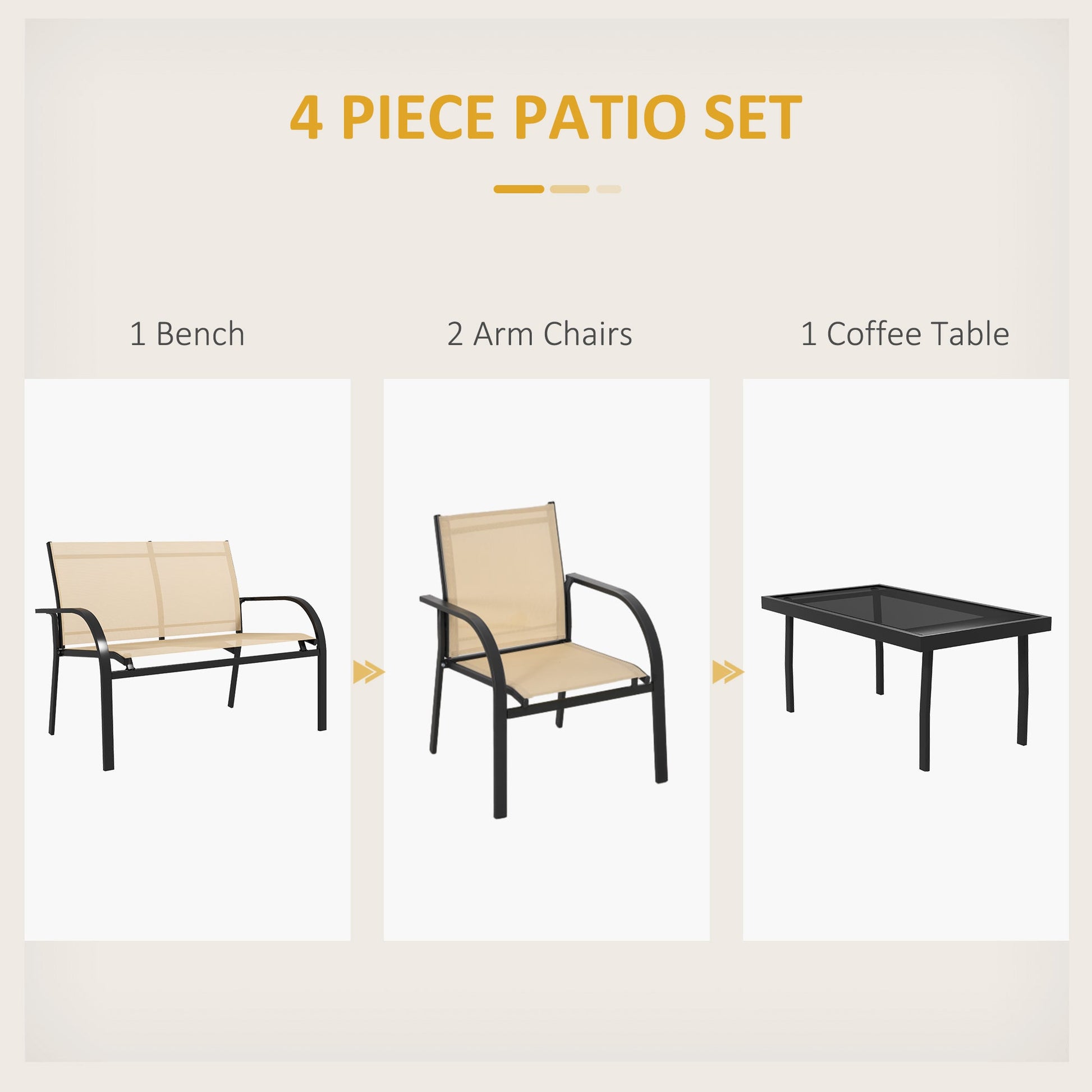 Outsunny Four-Piece Curved Steel Garden Dining Set - Beige/Grey