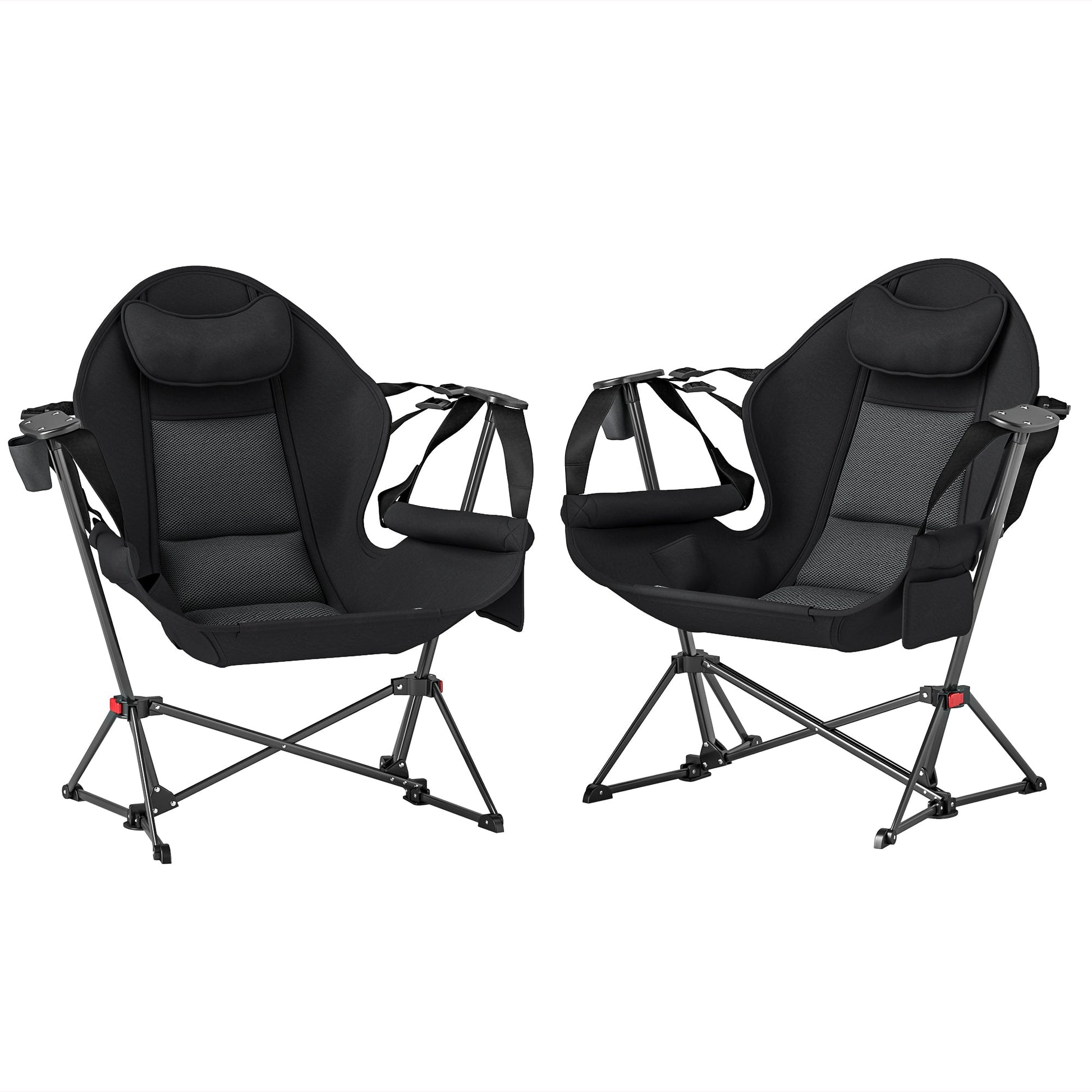 Outsunny Hammock Camping Chair Set of 2, Adjustable Back Portable Swinging Camping Chair with Cup Holder, Headrest, Padded Seat and Carry Bag for Travel Fishing Hiking, Black