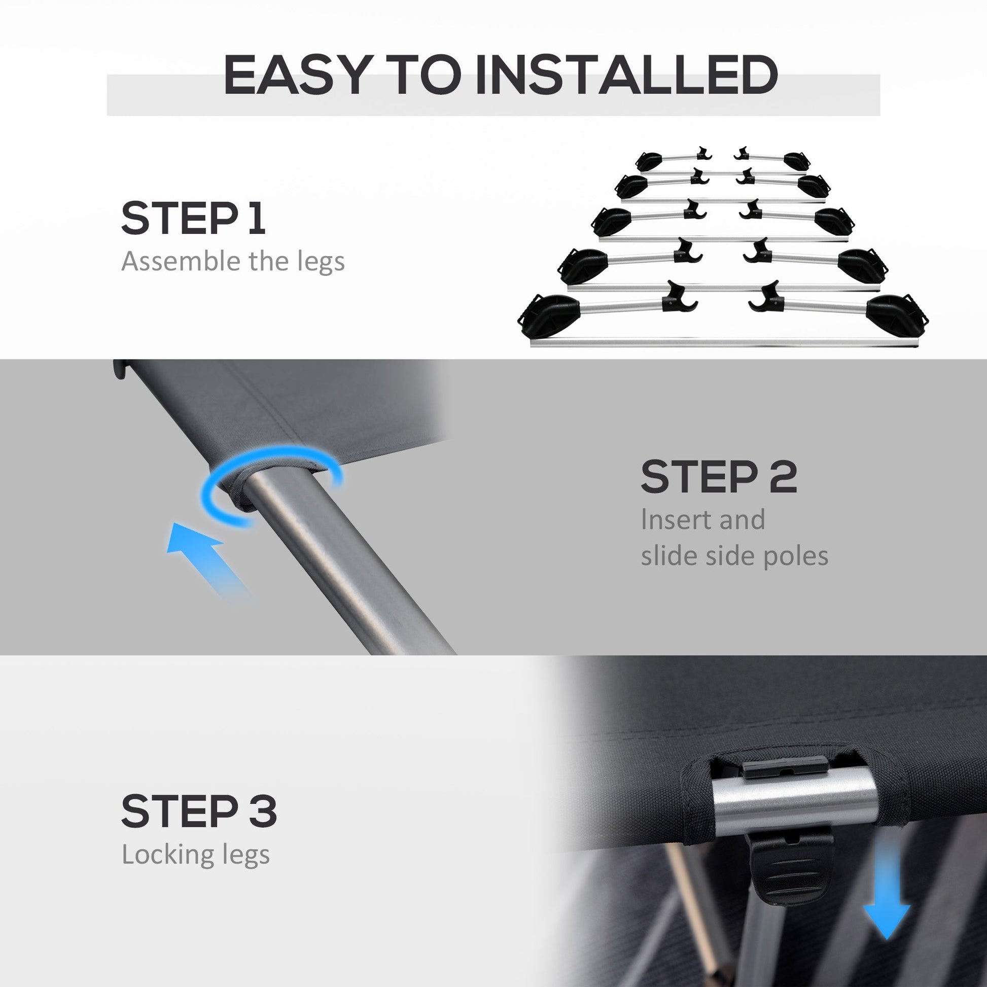 Sleeping when camping is never the great experience. Let's put an end to this, with the help of this Outsunny camping travel cot. A fully buildable design - comes with legs, side poles and top fabric - set up and take down, put in the bag and take with you wherever you want; makes being comfortable on camping trips ever so easy. The top fabric holds your body comfortably, the legs elevate you so you don't have to touch the ground.